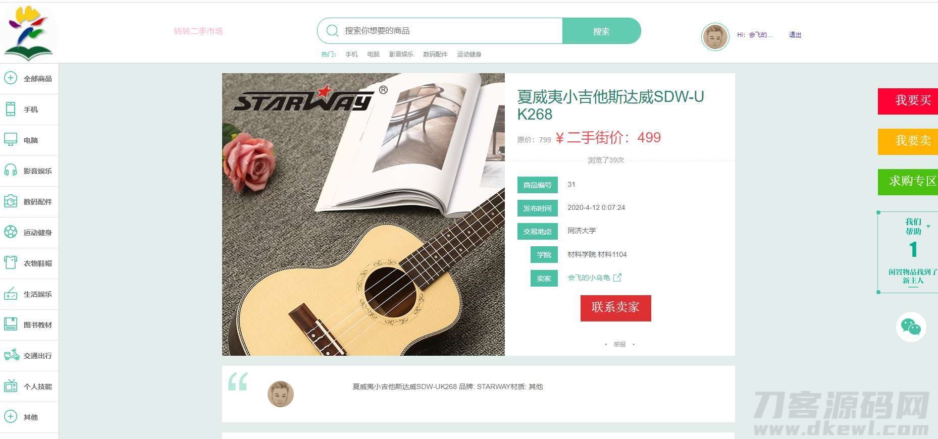 转载请注明出处: 牛牛源码 » 校园转转二手市场源码/Java二手交易市场整站源码