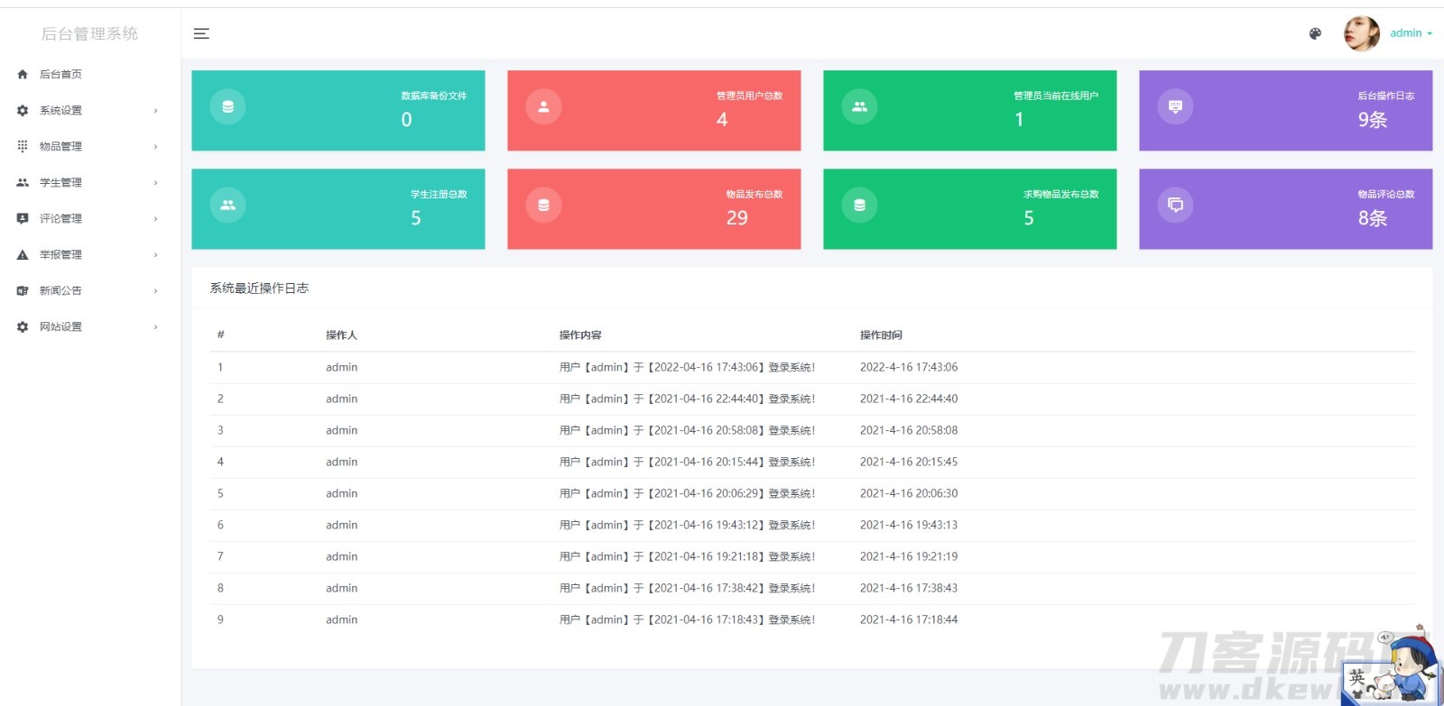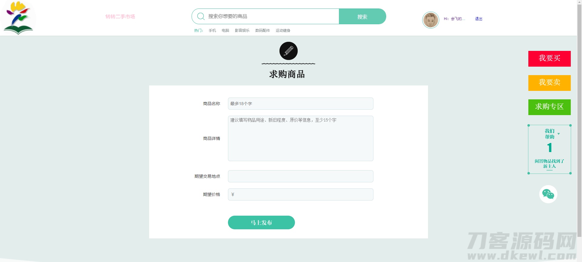简介:校园转转二手市场源码分享,Java写的应用,改成本毕设啥还是挺不错的,mybatis-plus 和 Hibernate随心用后台地址:/home/index/index账号密码:admin/123456前台地址:/system/login图片: