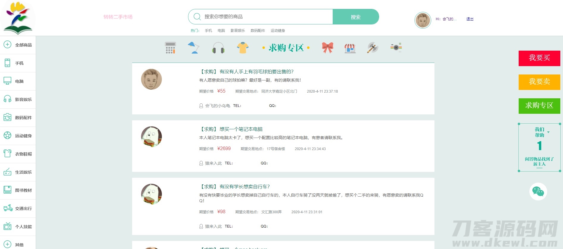 | 标签 | Java二手交易市场整站源码校园转转二手市场源码 | ||