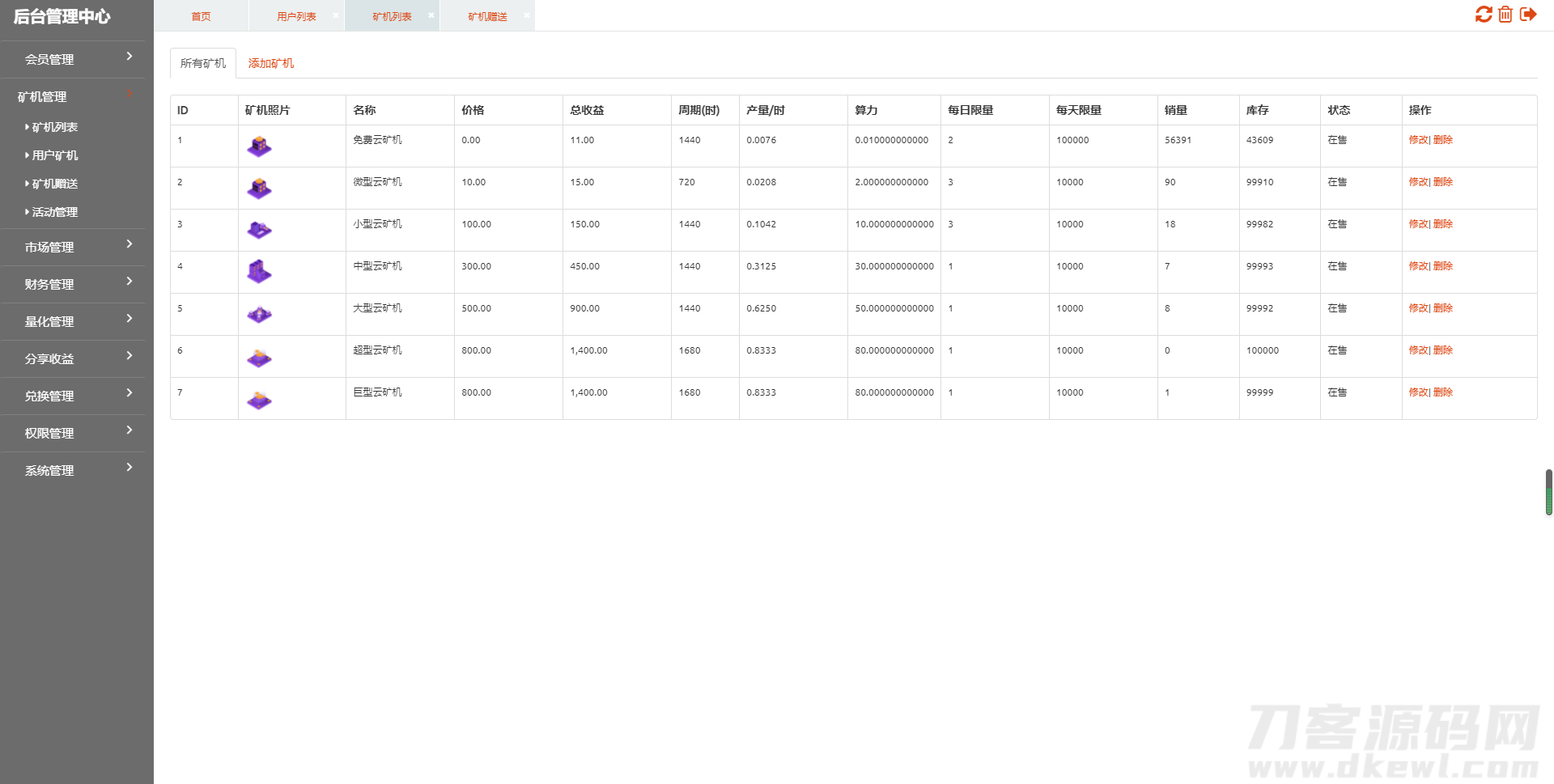 简介:这套二开了UI的矿机,总体来说二开的挺好看的,跟之前那套黑色的比是有点逼格,后门还没扫,下载下来后先扫下后门吧。后台路径:/AabbccsdminPHP版本:5.6后台账号密码:admin/123456图片: