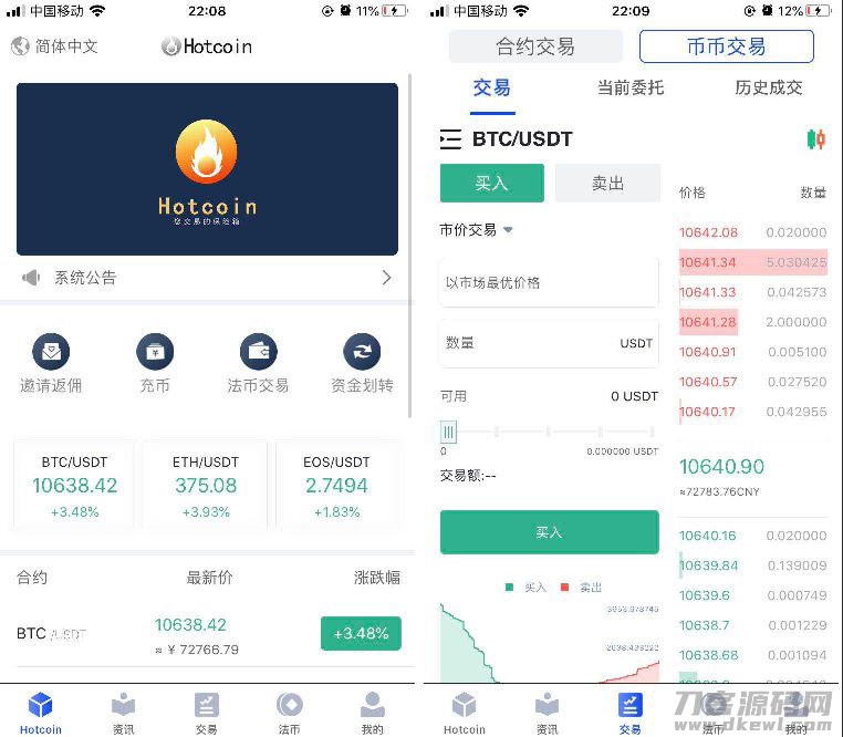 原生合约交易所完整源码,带有原生安卓源码、IOS 端源码,币币、OTC 承兑商、永续合约交易所系统源码。对接火币网的数据,行情K 线交易对都是火币网数据。