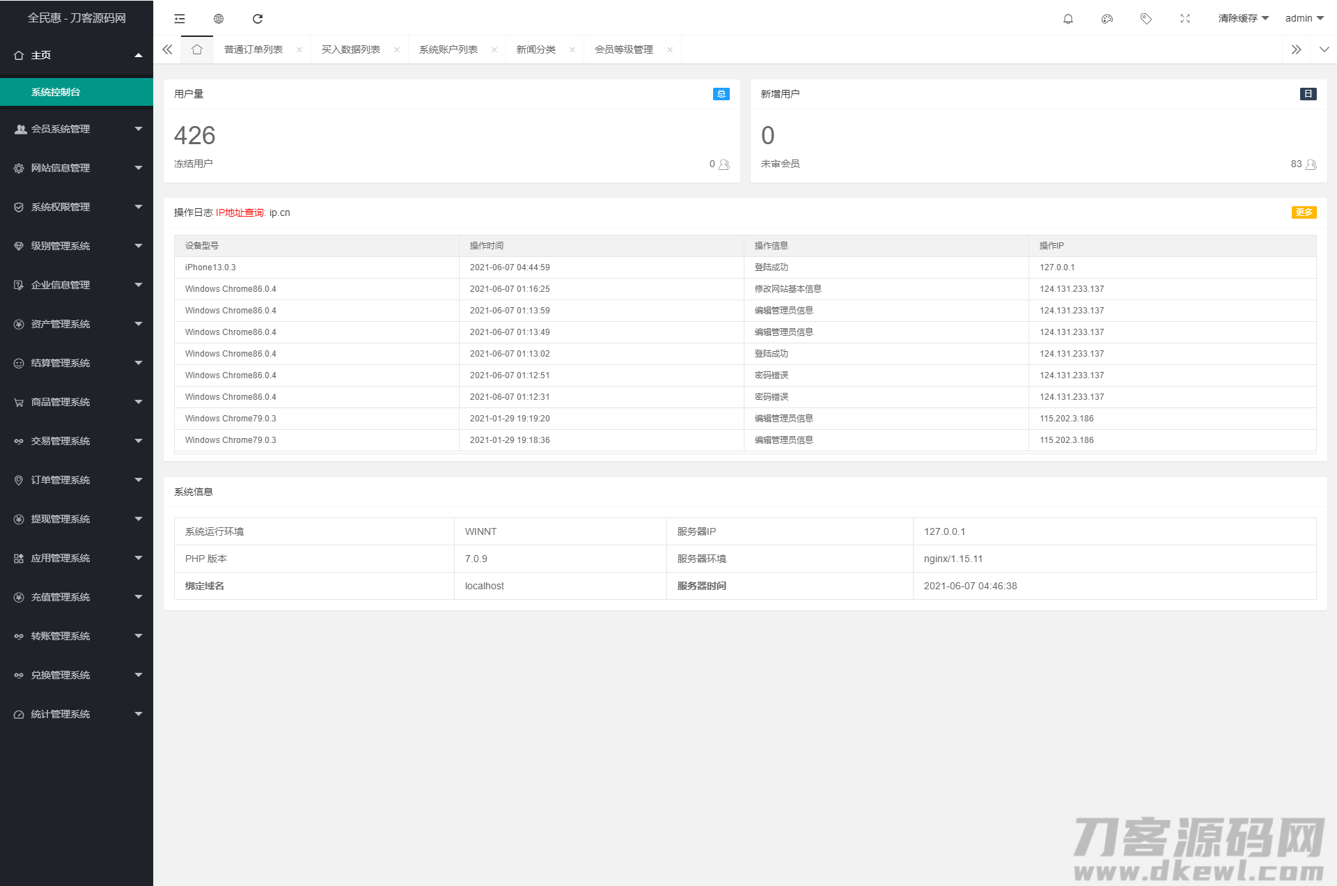 简介:Linux+宝塔 Apache 2.4.46 +PHP7.2+MySQL5.6网站目录 /public设置thinkphp伪静态config/database.php 修改数据库信息删除/runtime 里面所有缓存文件后台登录地址 域名/admin.php 账号admin 密码 123456站长亲测,后台功能非常强大,需要下载!图片: