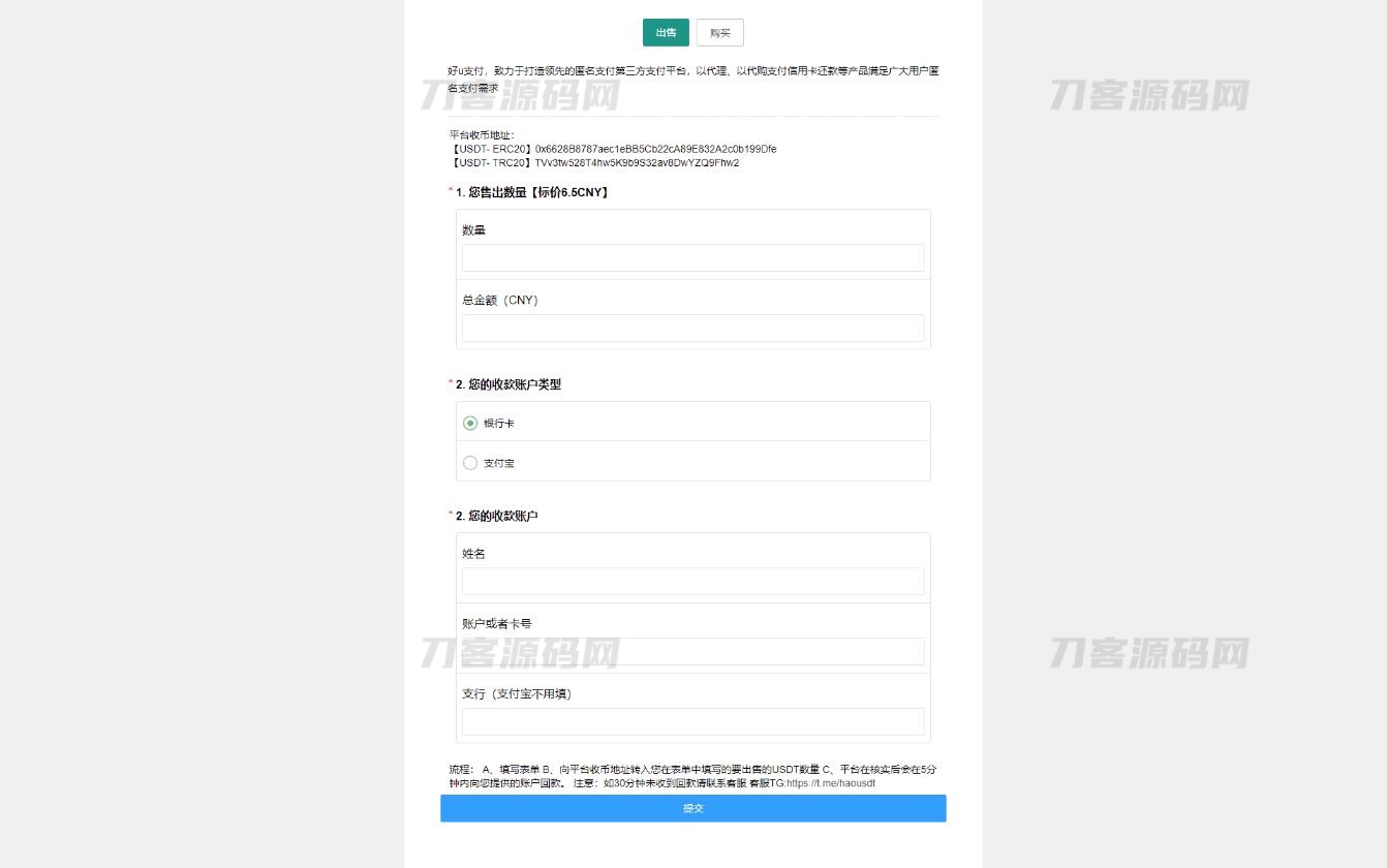 简介:区块链OTC单页建议出售购买系统源码 区块链交易系统源码 USDT买卖交易平台usdt出售购买价格根据后台配置数量不一样价格不一样。 前端输入内容提交后,后台会邮箱通知网站管理员处理订单。 图片: