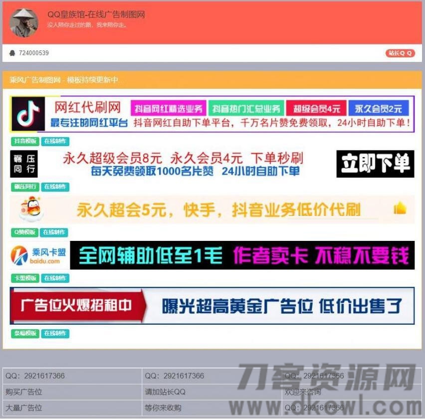 PHP横幅广告图片在线制作网站源码 开源无加密对于小型代刷、卡盟等站长买广告位放的横幅图片制作 非常方便首页内容修改文件在index.php文字 首页文字广告修改在jason.php文件源码是无后台的