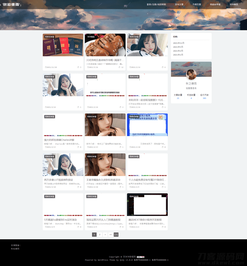 转载请注明出处: 牛牛源码 » 简约自适应wordpress博客二次元主题qzdy4.3