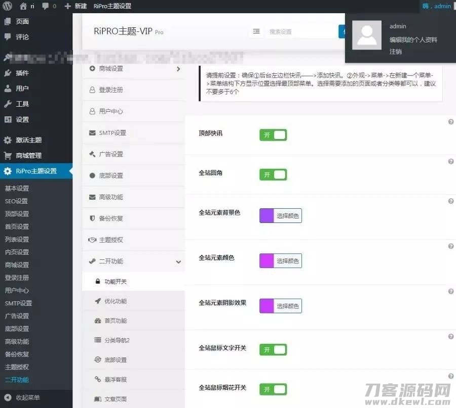 转载请注明出处: 牛牛源码 » WordPress资源分享下载站日主题RiPro主题全站美化包 集成到后台功能