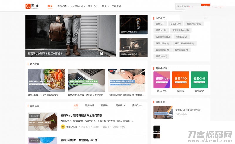 酱茄Free主题由酱茄开发的一款免费开源的WordPress主题,主题专为WordPress博客、资讯、自媒体网站而设计,遵循GPL V2.0开源协议发布。
