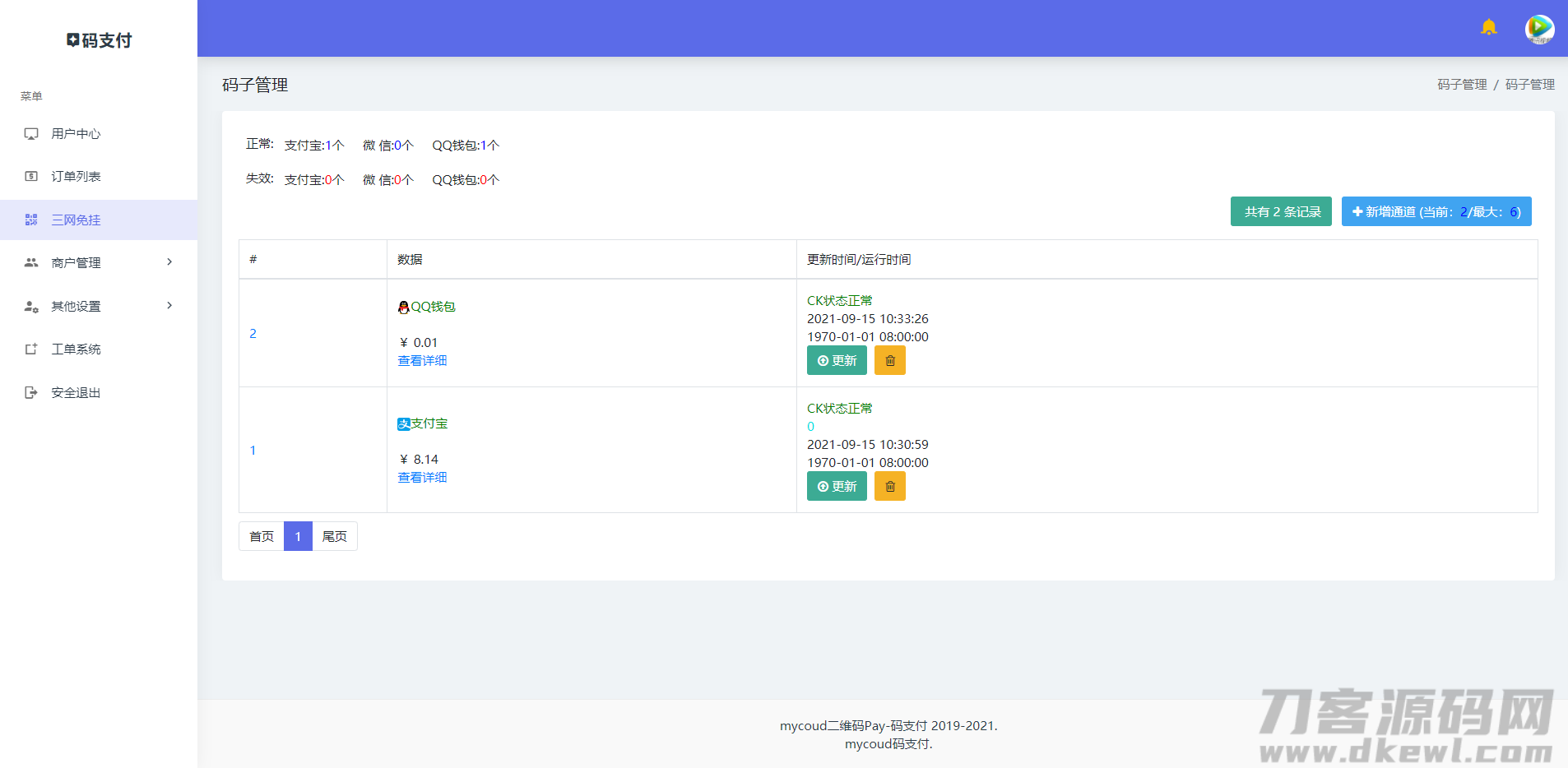 简介:这个系统不是很完美,需要自己二开修复免签CK跟解码都是在本地的不是云端的,不过很可惜的是QQ的协议很早就不能用了,需要自己更新而支付宝的需要自己更改编号的,不然就算是出码了也是无法支付的图片: