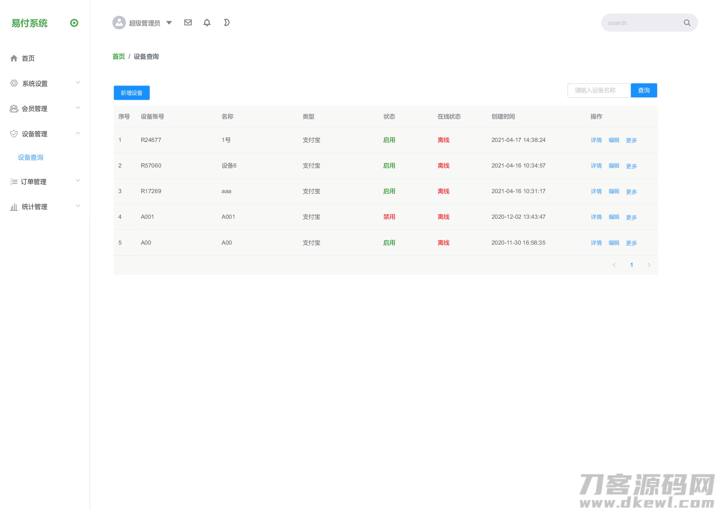 简介:其他站买的,没有做测试,源码是JAVA的,附带了安装文档,需要的拿无售后代付系统/代付系统源码/支付宝代付系统/API代付系统系统流程:后台开通代理——开通商户——商户做代付(后台手工提交和 api 提交两种方式)1、纯代付系统2、支持个人支付宝全自动3、支持单笔/批量/API接口方式代付4、支持白名单、谷歌验证5、收付款模式采用自动回调/自动转账 一、运营平台商户管理/代理商管理/设备管理...