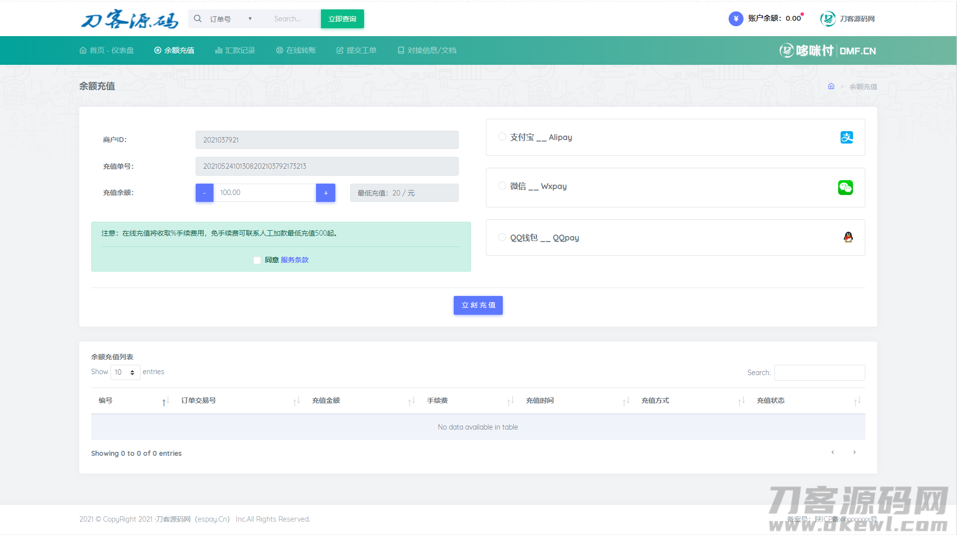 5、自定义设置最低到最 高汇款金额 6、可开启充值金额延迟到账有效保证商户诈骗