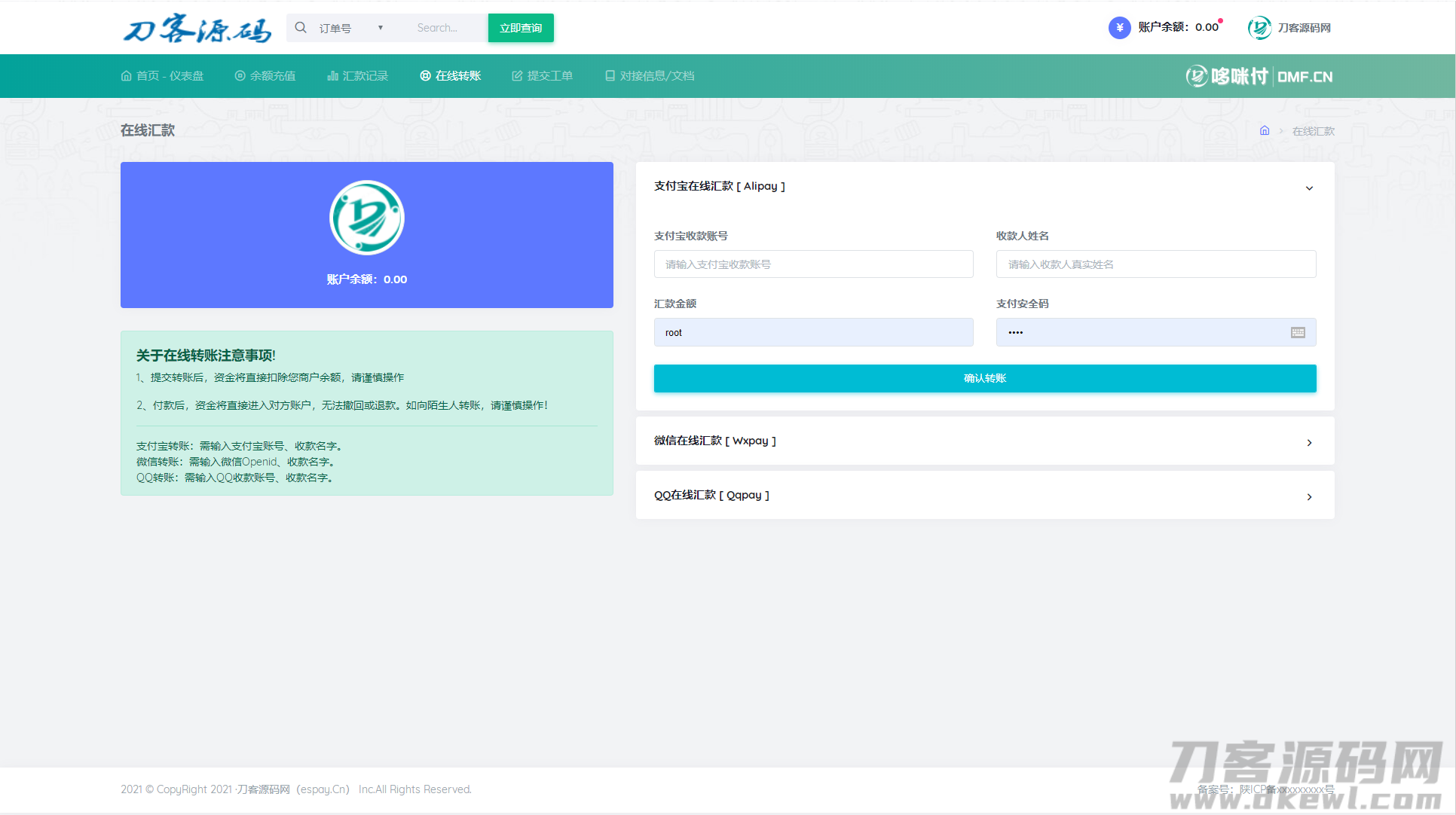 1、支持支付宝、微信、QQ三网代付接口 2、可开启汇款