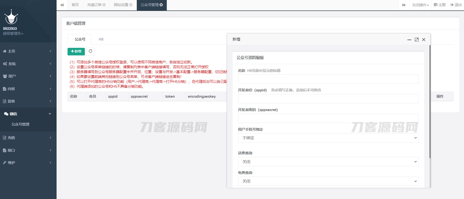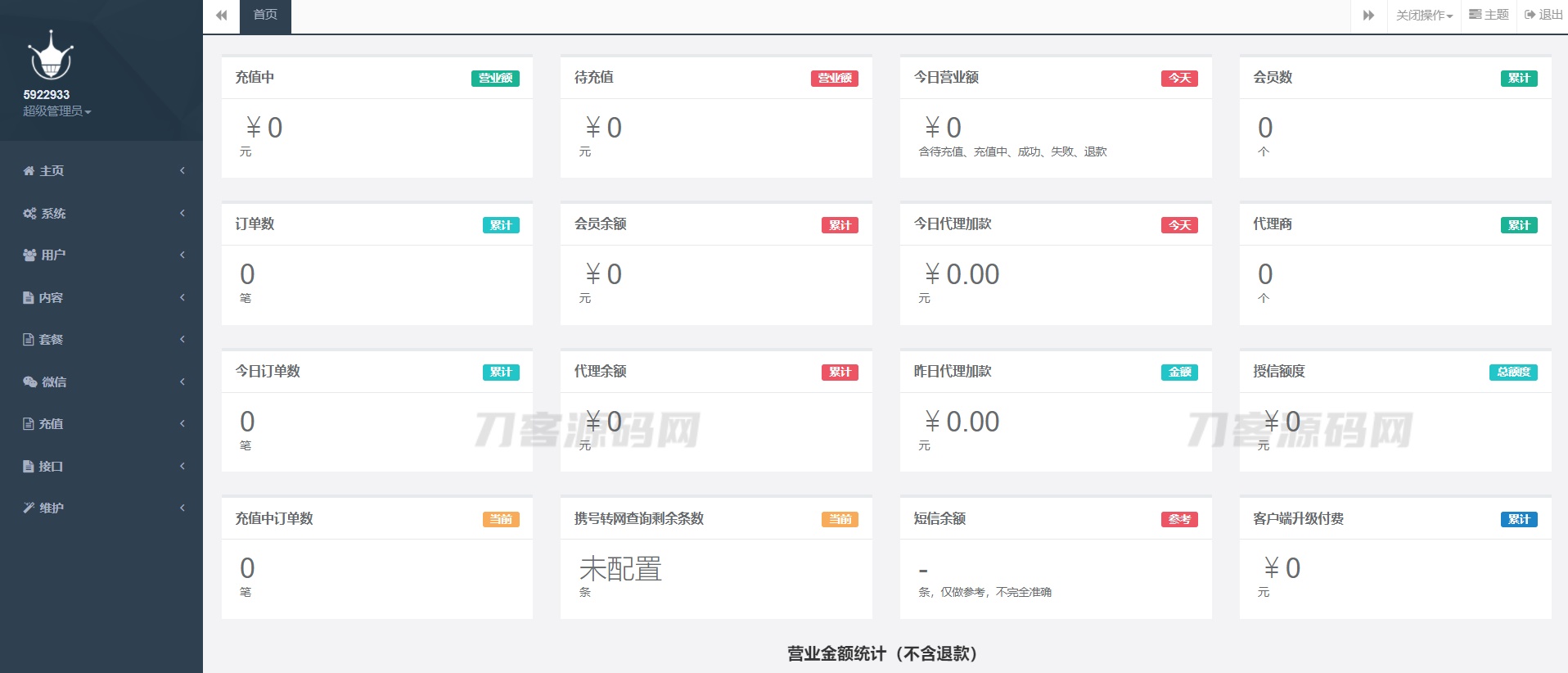 功能简介:大猿人中控系统目前是市面上用的最多的电话费充值中控系统,支持代理分销、公众号H5、API接口对接等功能,也是目前最完善的一款中控系统,前端全开源,已破解免授权!