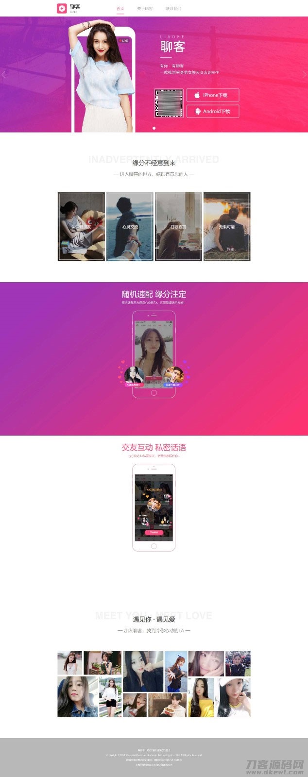 聊天交友短视频直播手机app应用下载落地页HTML源码,稍改一下上传服务器或虚拟主机即可使用