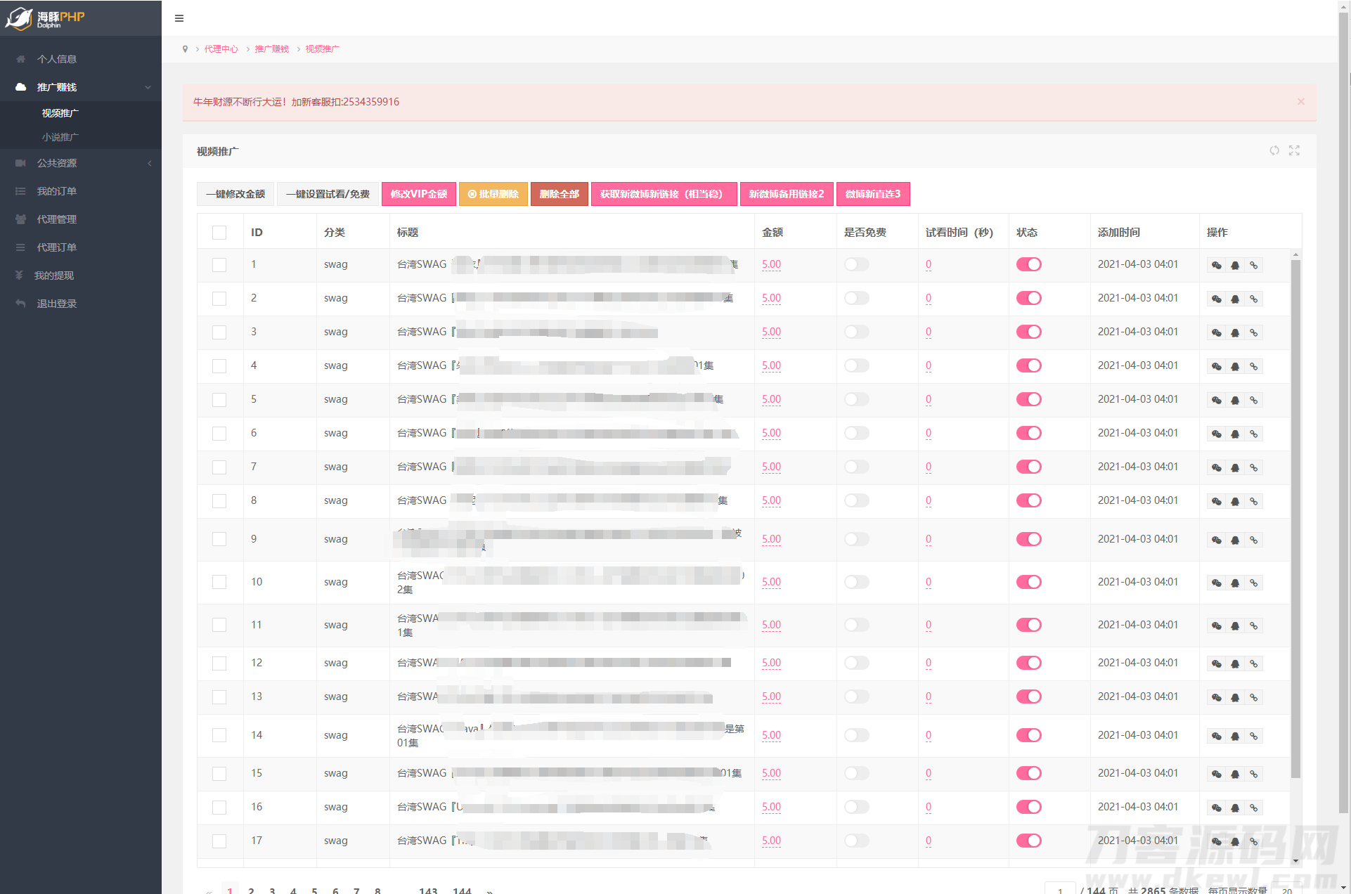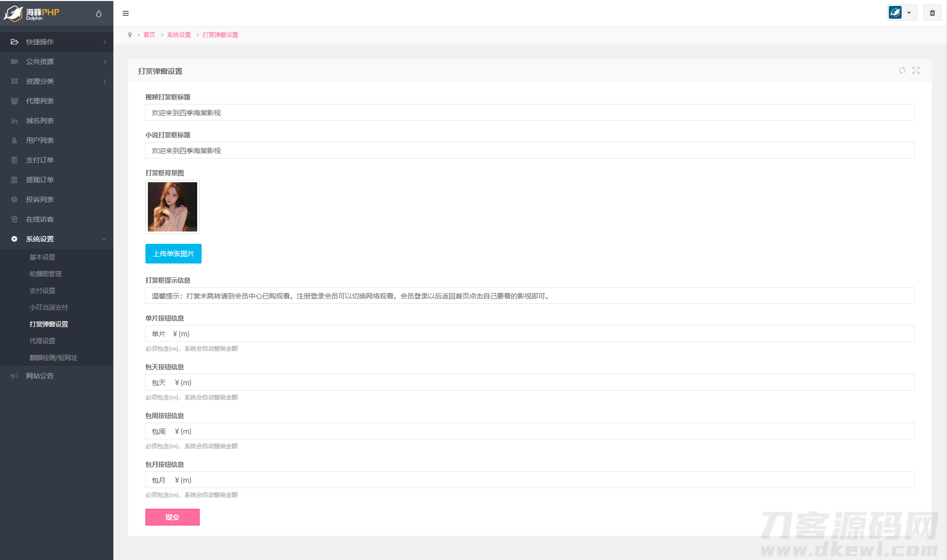 简介:【全网首发】2022最新视频打赏系统全开源版本_附教程_站长亲测 这套系统是我从以前客户手里拿到的,100%完整可用,今天测试防红链接失效了,需要修改防红API即可!前端页面展示我就不放了,懂的都懂请勿用于商业以及非法用途,仅供研究学习使用!后台端截图:代理端截图: