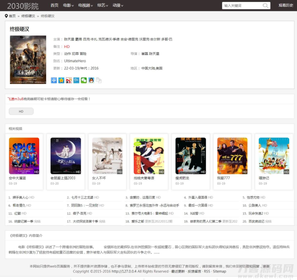 简介:2030影院群站专用苹果CMS10自适应手机电影整站源码影视模板采集接口使用了飞速资源采集+卧龙资源网采集接口,目前均已经对接好了采集。包括定时任务都已经设置好了只需在宝塔设置一下定时任务就可以实现自动采集了。搭建教程PHP7.0 + MySQL5.6安装sg11+fileinfo扩展上传网站文件到根目录解压,导入数据库application/database.php修改数据库信息伪静态设置...