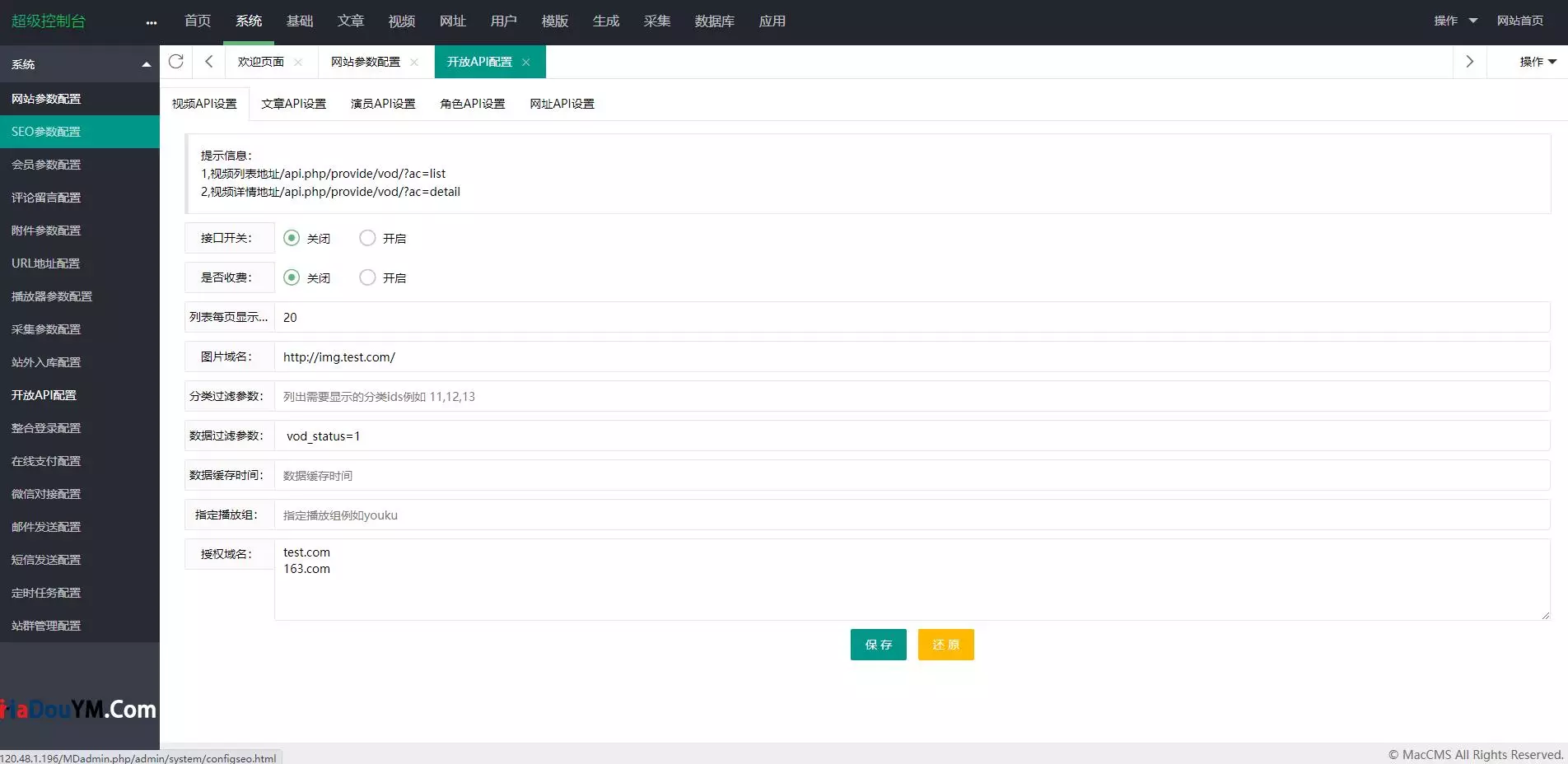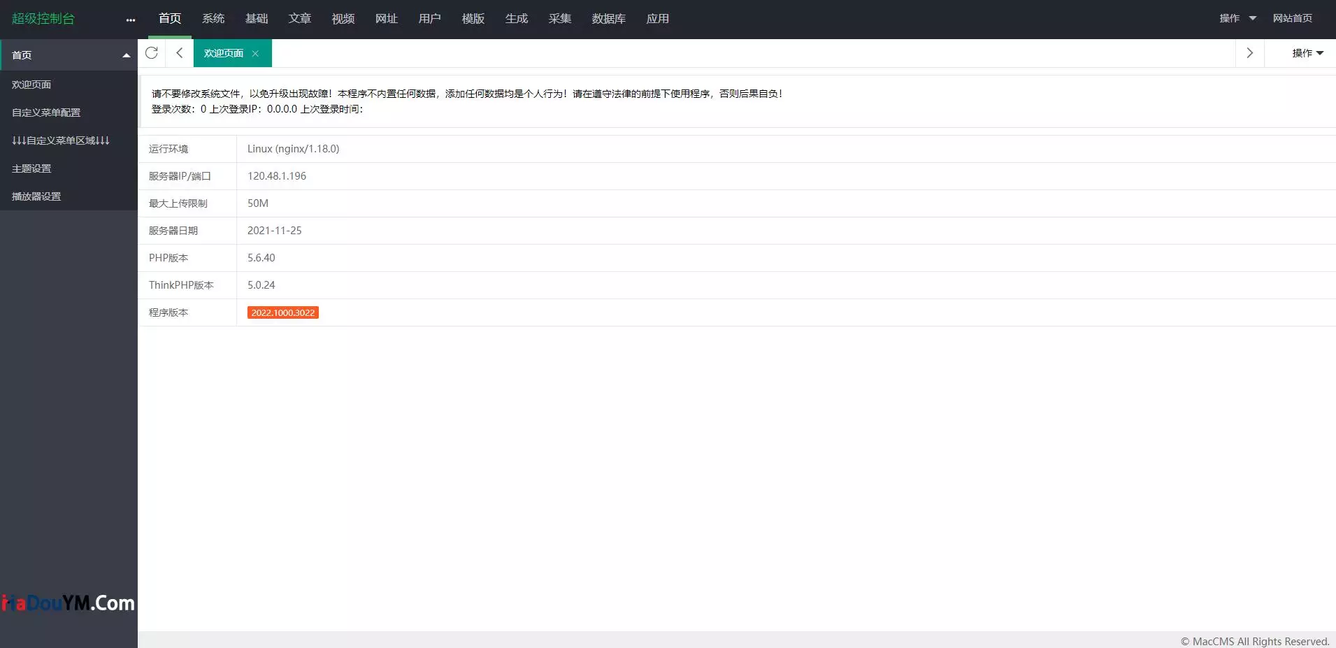 简介:说在最前面的,影视类的东西,请勿用于违规内容的制作,一切因为下载人/使用人擅自更改内容方向引起的责任,均由下载人/使用人自行承担! 一键执行新装的版本,内置火车头等。实跑了下,很不错啊,就真的是很不错,功能全面,UI漂亮,运行流畅。真是不错的东西。需要安装SG11扩展(支持PHP5.6-7.3)演示地址:http://ys08.madouym.com图片:
