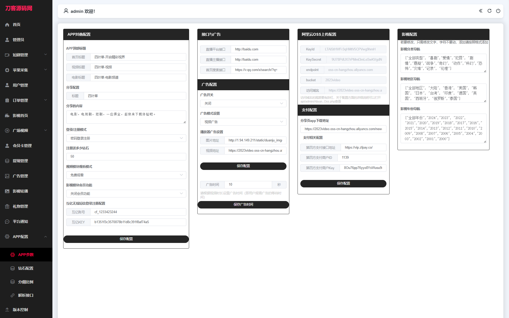简介:最新三端影视系统源码 附教程 苹果CMS重要提示:修改后台的任何HTML、JS文件后一定要清理浏览器缓存,否则可能不生效。关于苹果cms系统,这个只是用来采集电影电视剧用的,还使用了苹果cms自带的卡密功,用来激活app会员或者充值钻石,或者你也可以自己做一个卡密系统,还使用了苹果cms的影视分类功能,苹果cms已与app对接了,所以如非必要或者不懂,请不要改动苹果cms的任何设置,尤其是苹...