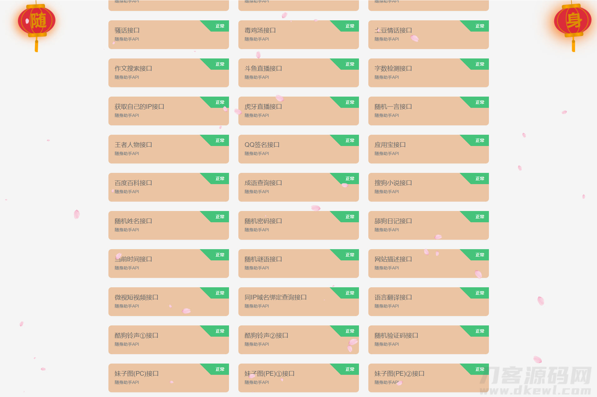 简介:随身助手API接口网站PHP源码本次更新了271个可用接口,现在开源给大家使用 图片: