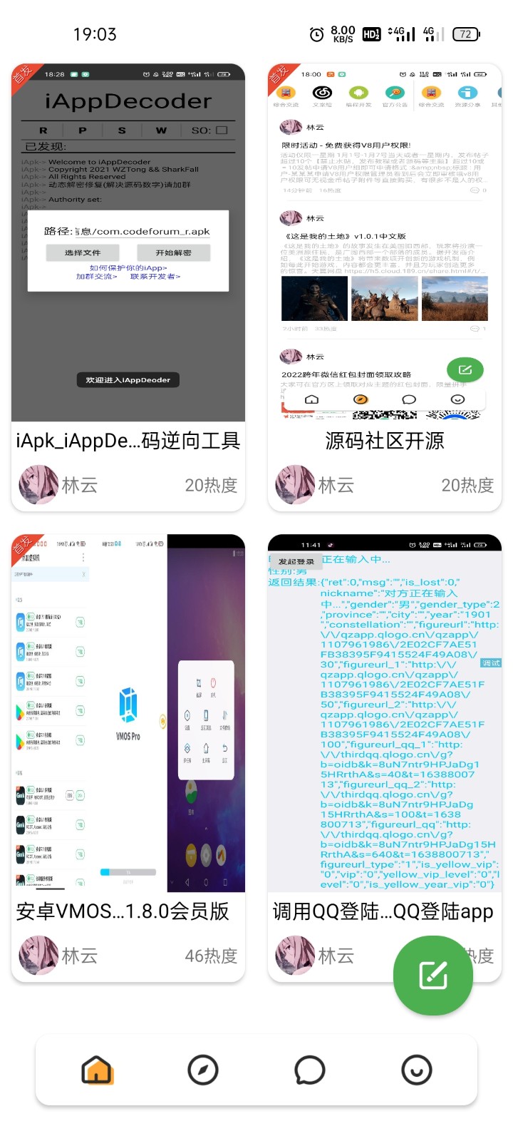 简介:首页源码下载页面,板块,系统消息,我的页面板块支持查看置顶,收藏板块,帖子可评论,删除,点赞等不多说,非常nice图片: