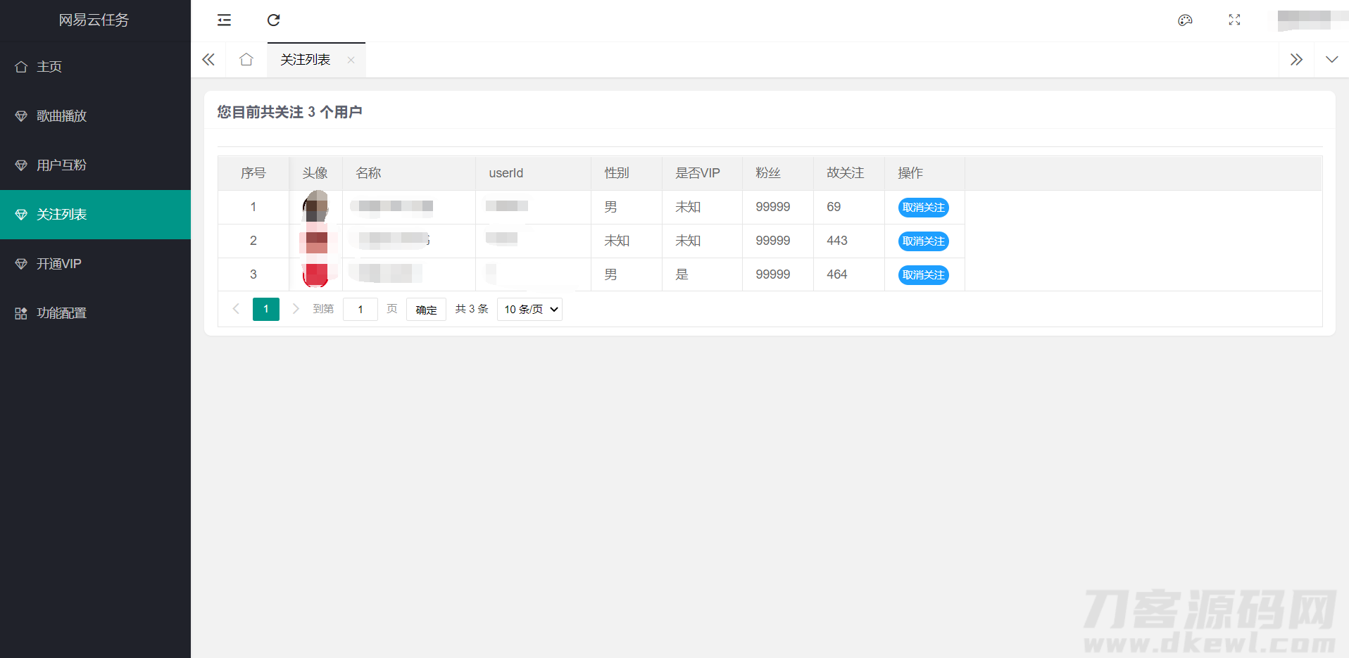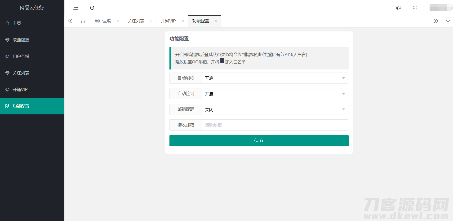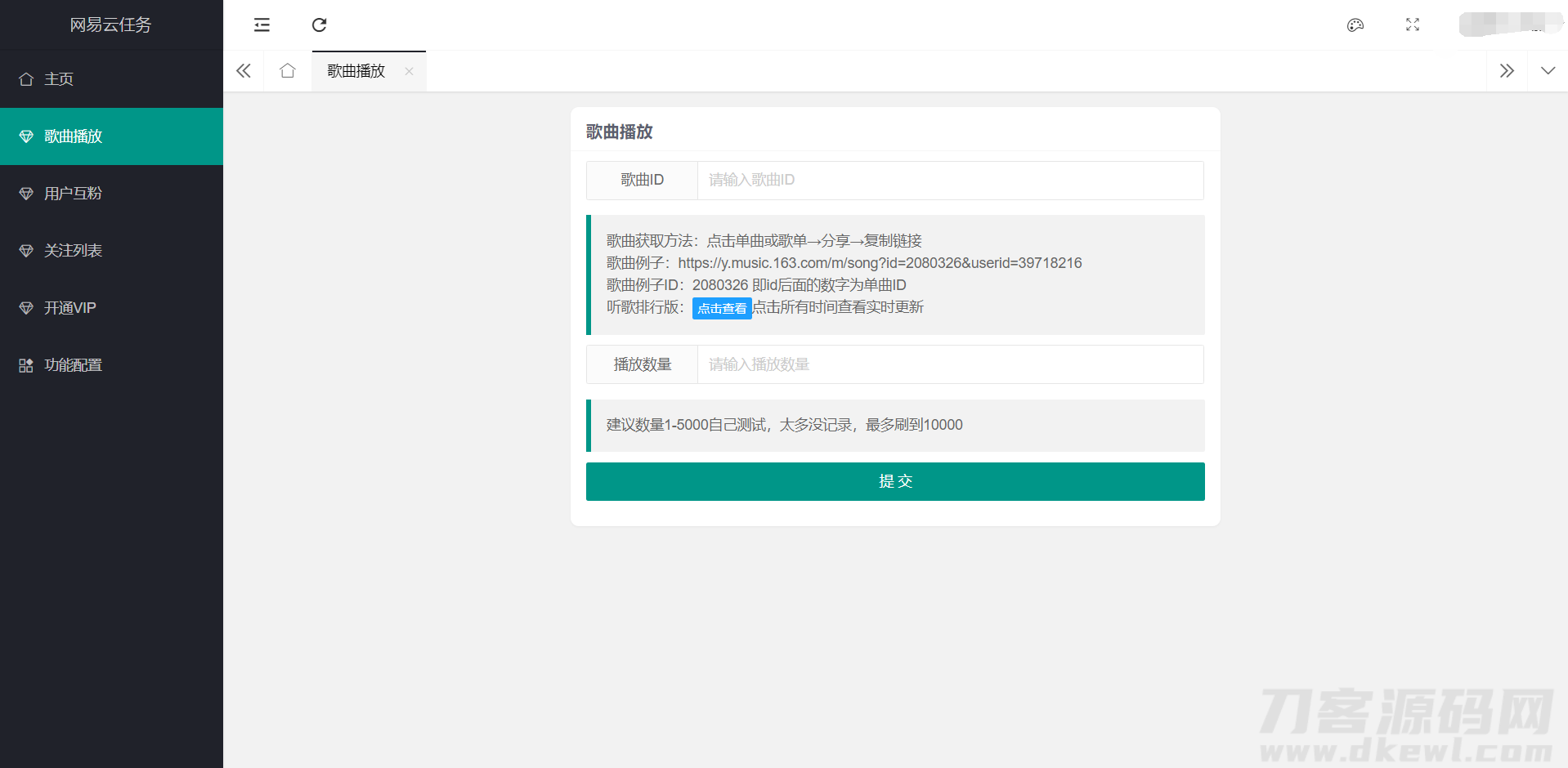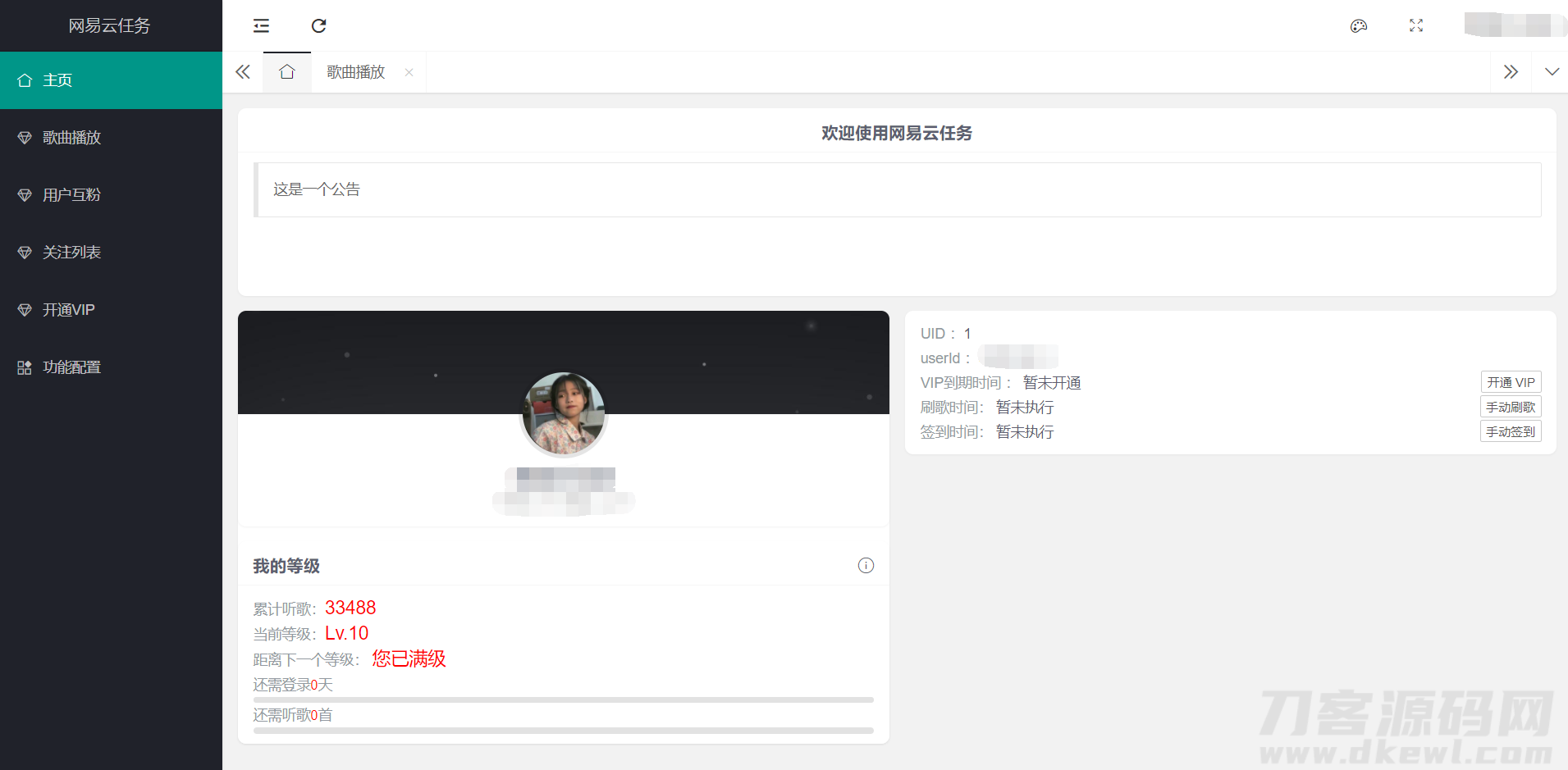 支持充值 会员使用 每日签到打卡任务 刷歌曲播放 刷粉丝等