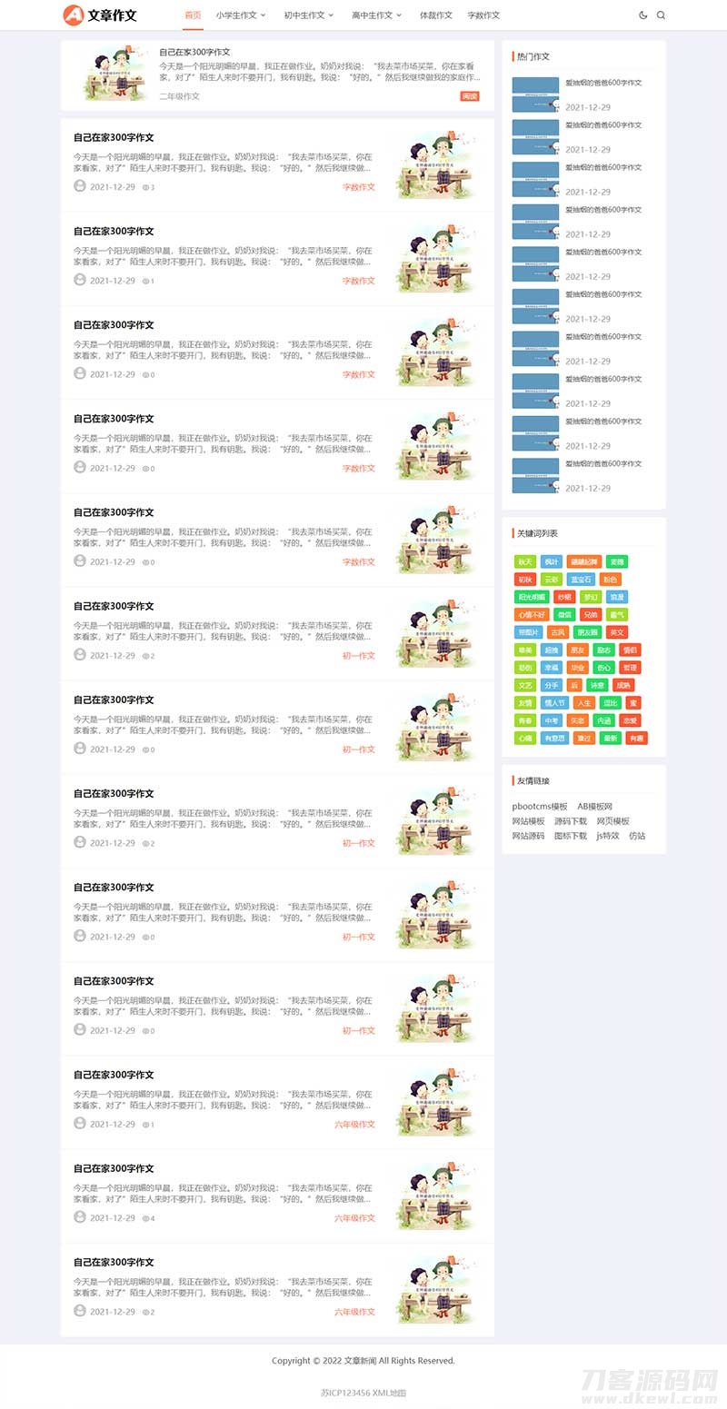 | 标签 | pbootcms文章资讯论文作文个人博客网站源码下载模板响应式小学初中作文网站 | ||