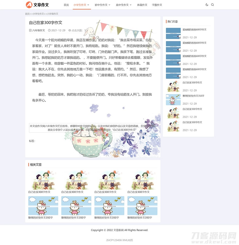 (自适应手机端)响应式小学初中作文网站pbootcms模板 文章资讯论文作文个人博客网站源码下载