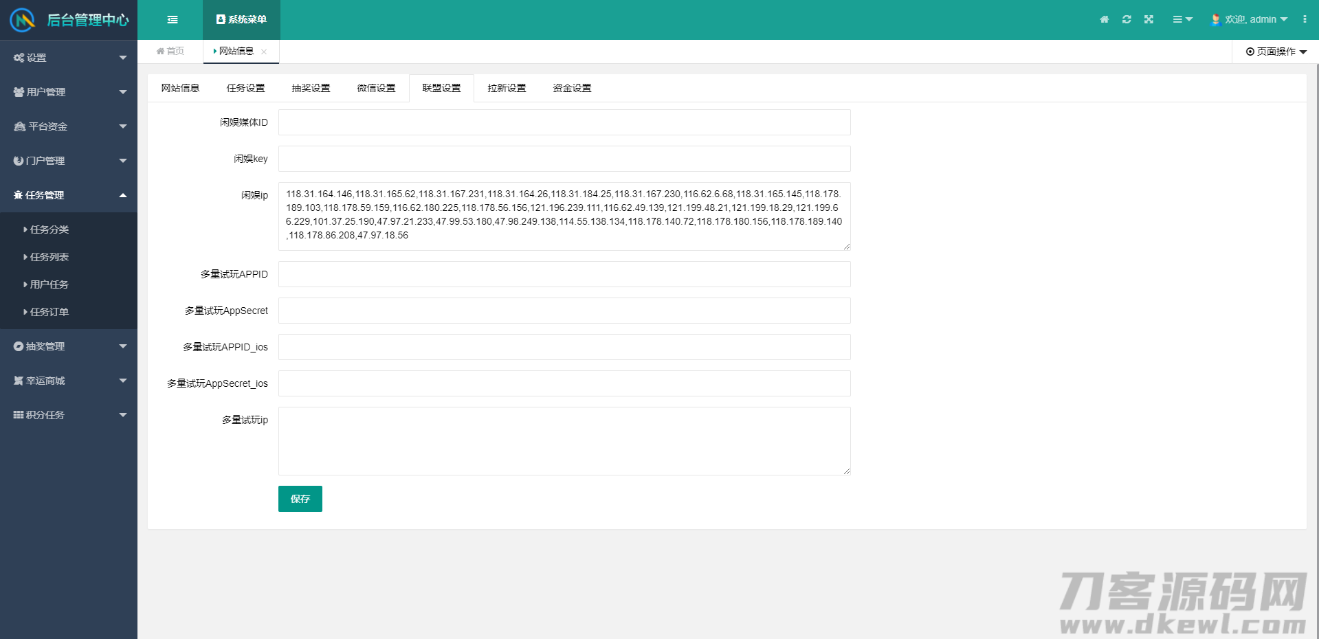联盟配置:联盟功能接口已测试完善,并实现线上收益,每个平台管理只需要申请联盟账户即可对接联盟相关的任务。分为为8/2分配。
