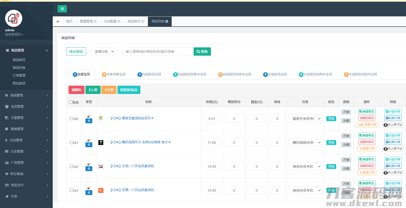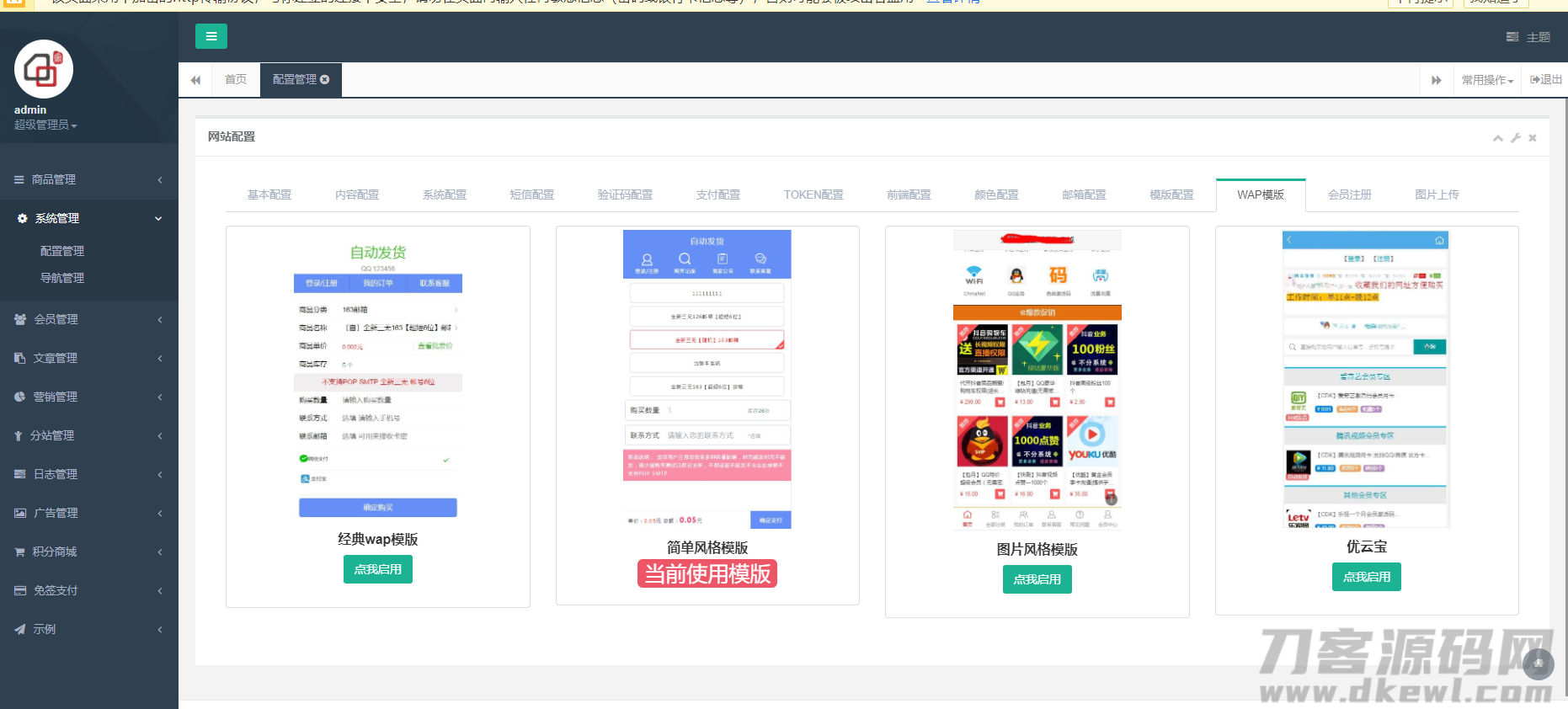 简介:淘宝买的,没有授权,亲测可用 功能很全网上可用搜到,我下载的好几个安装都tm授权,无奈万能淘宝十多套模板!安装后,提示“非法host”“非法地址” 先登录后台,分站配置,主域名填成自己的!伪静态thinkphp 运行目录public测试环境 Nginx+PHP 7.2+mysql5.6图片: