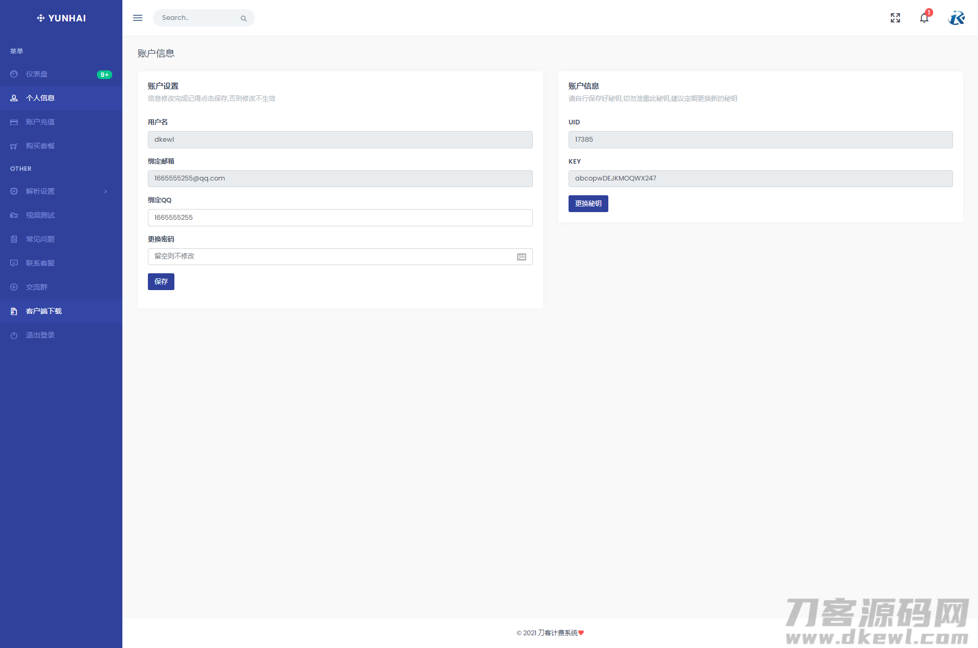 源码含:替换系统、计费系统、客户端源码,安装云海解析计费系统需 PHP7 以上
