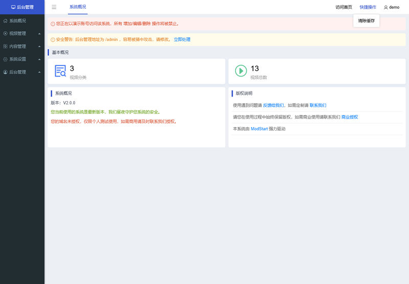 轻量级视频管理系统,适合产品演示、产品说明: