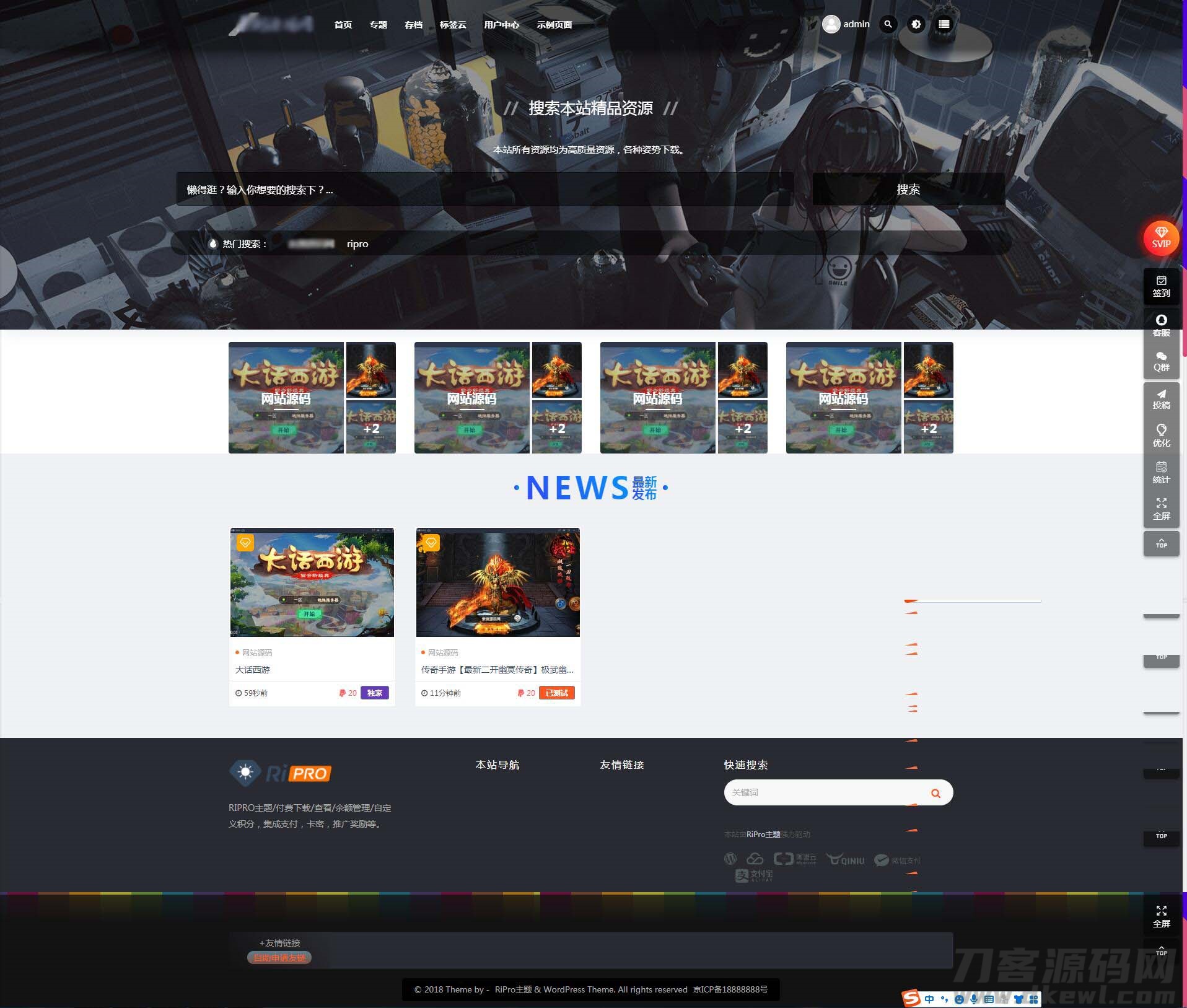 简介:注意:使用该子主题前需要安装wordpress程序和ripro模板1.把子主题压缩文件上传到/wp-content/themes/ 解压2.把替换包上传到/wp-content/themes/ripro/ 解压3.到后台启动子主题4.最后发现ripro8以上的版本都不怎样兼容,建议用ripro7的版本图片: