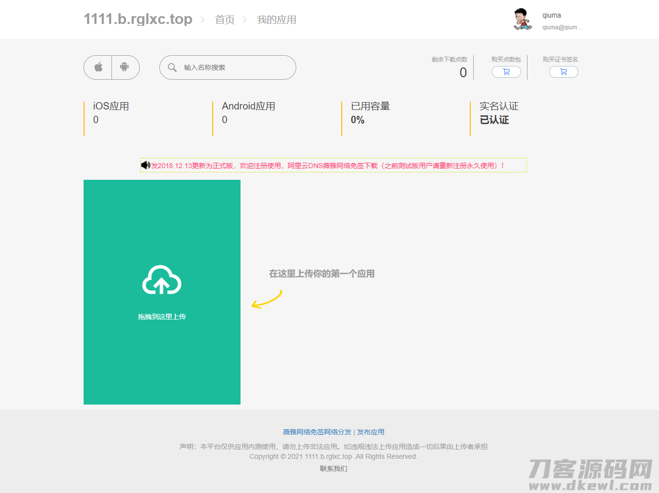 简介:主要功能:1、一键IOS免签封装;2、免签IOS,自动生成下载二维码;3、免签生成的IOS可与APK合并二码合一3、支持三方免签支付码支付、支持七牛云存储;PS:源码不断升级优化,UI、功能均以演示站点为准,购买前请体验好功能!没有完美的源码,所售源码保证和演示站一样,请看演示再购买。工作原理:直接调用苹果自带的Safari浏览器打开客户的H5网址的、所以也不会存在客户目标网站域名在微信或Q...