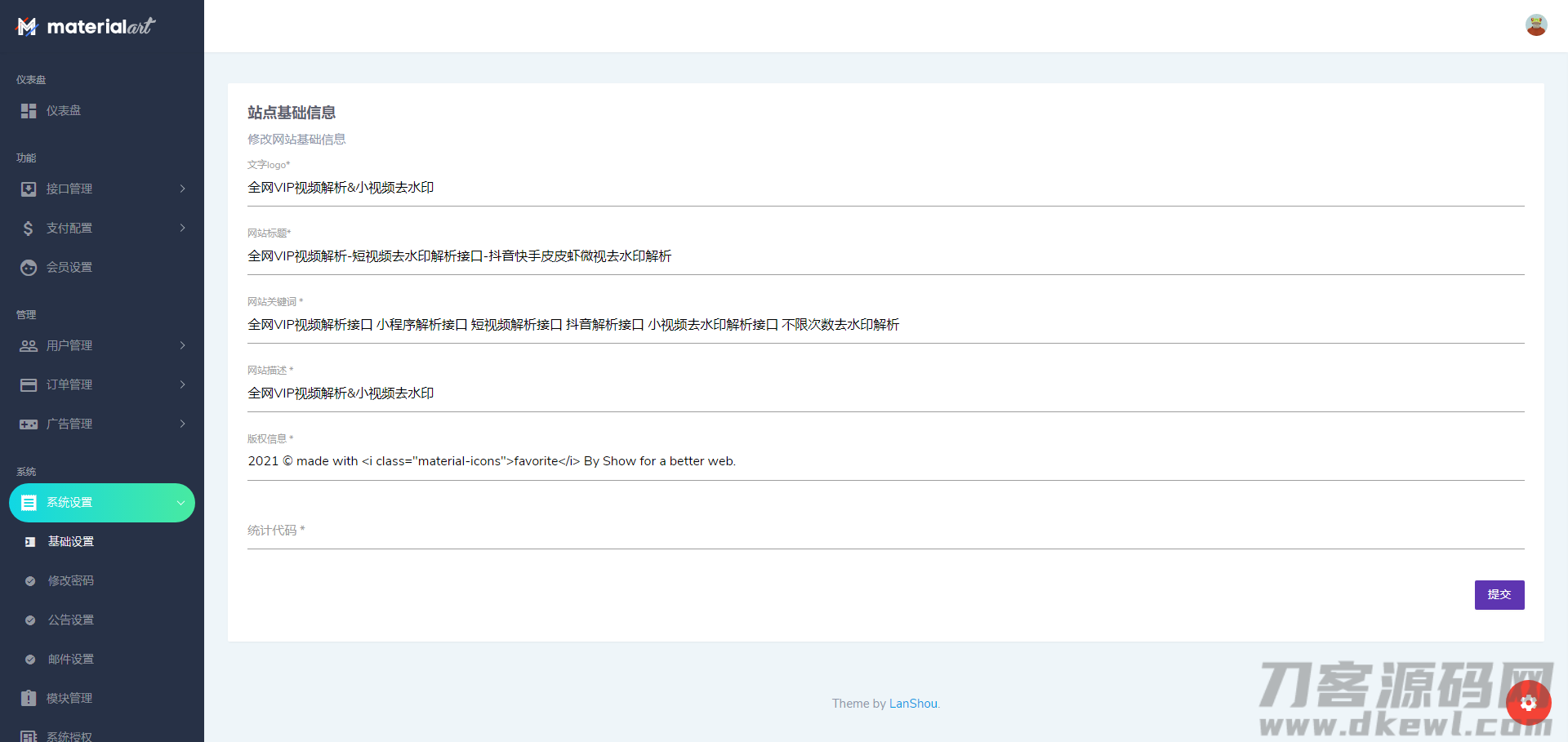 简介:短视频去水印接口支持全网解析源码,主要是可自定义API随时更换,一次二次解析均可,完全可以对接全网各大站点。后台UI美丽,功能强大~~图片: