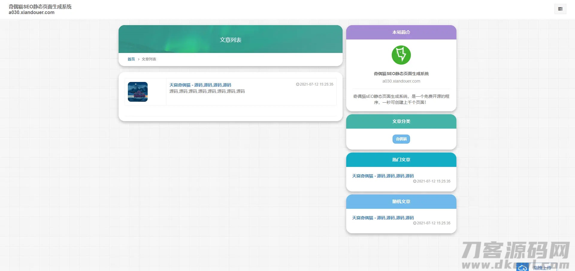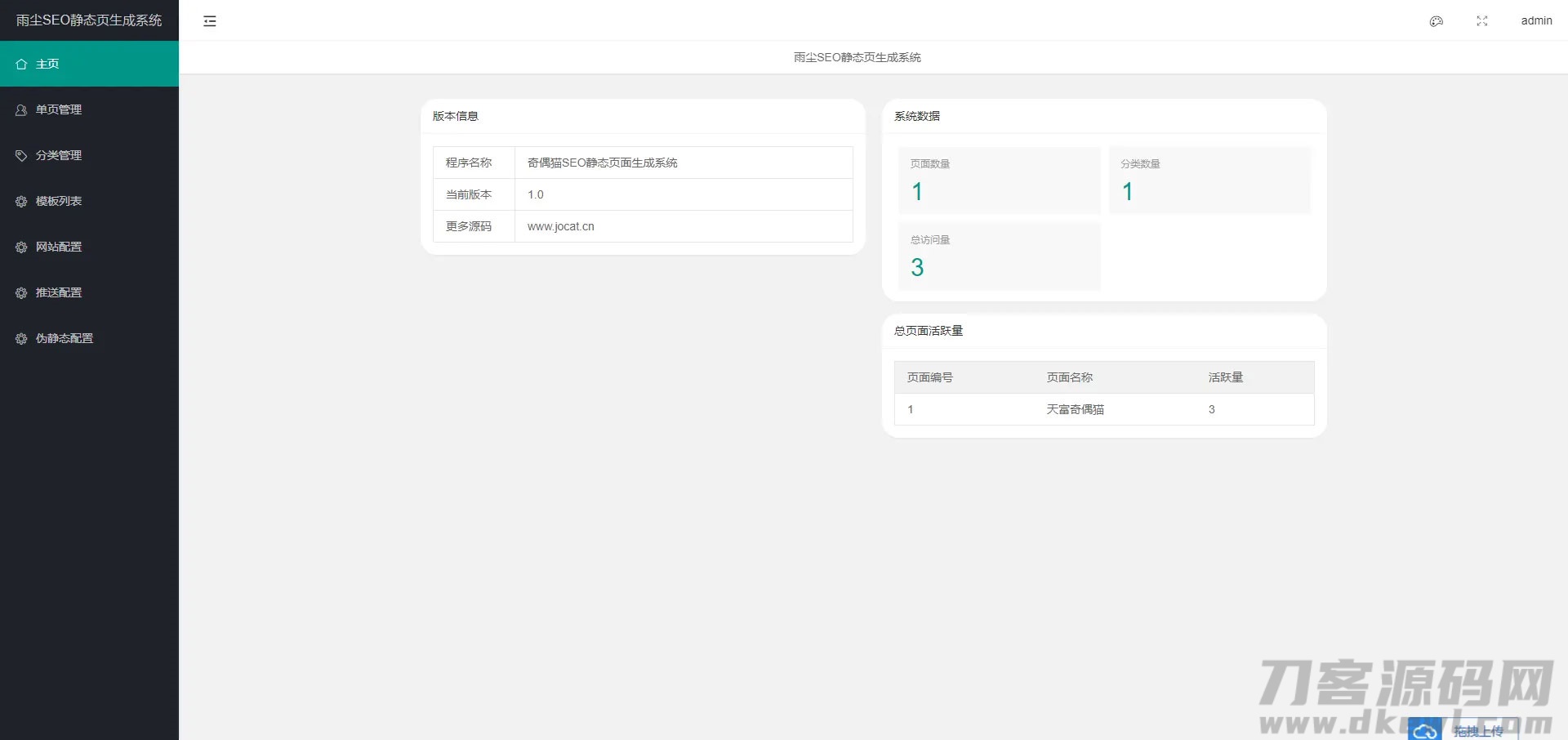 简介:一款随机静态页面生成系统,一秒钟可生成上千条单页面,批量生成单页用来做SEO是非常不错的源码。雨尘SEO静态页面生成系统源码v1.3版本,支持文章采集,功能,多模板选择批量生成单页,本次更新增了百度自动推送和网站地图sitemap功能。全新安装教程:手动导入数据库文件修改:config.php数据库信息后台目录:域名/admin后台账号:admin后台密码:123456运行环境:PHP7.0...