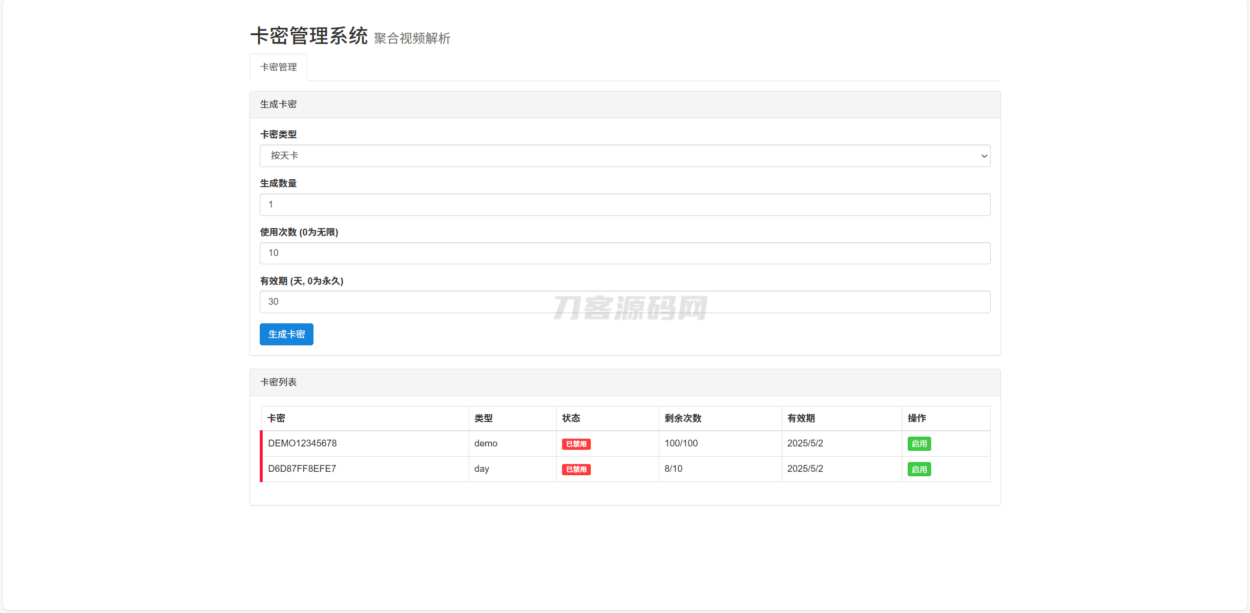 | 标签 | 全新二次元短视频解析系统带卡密验证 | ||
