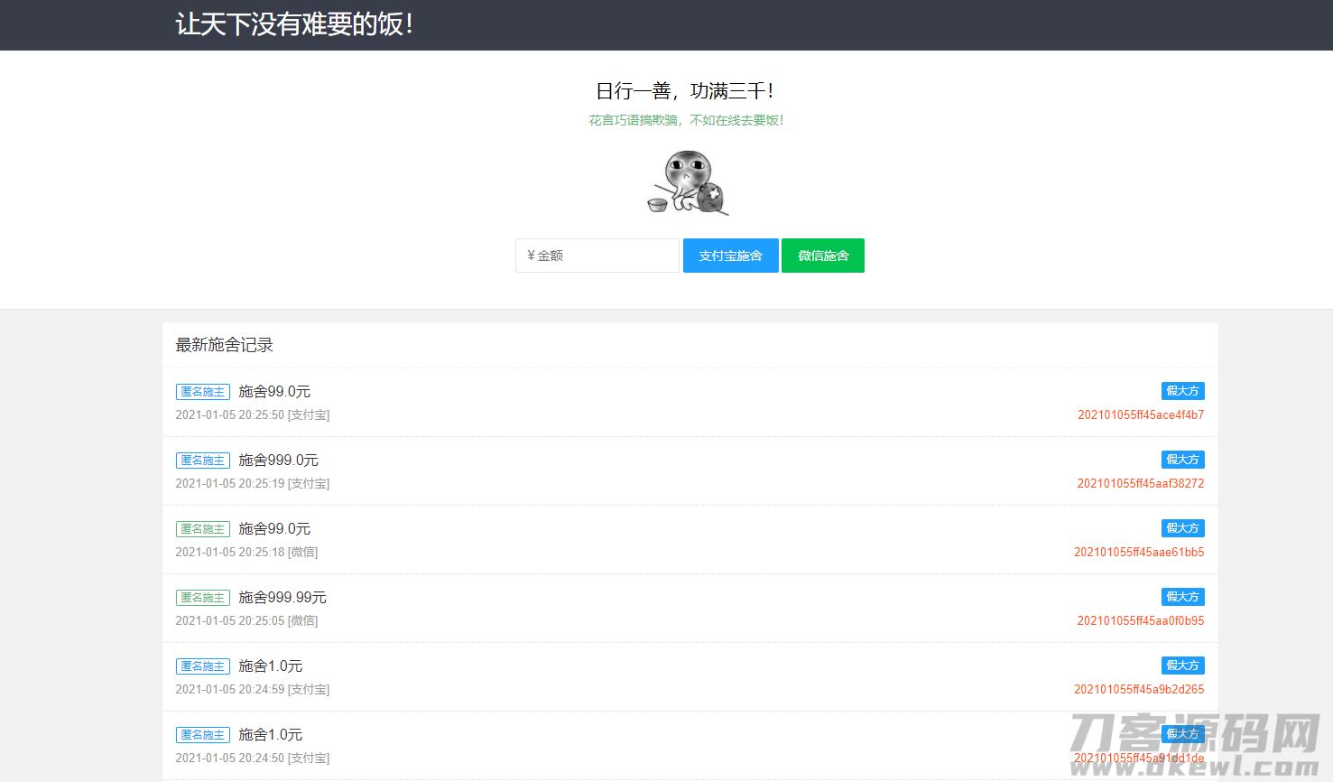转载请注明出处: 牛牛源码 » 2021个人在线要饭网站源码