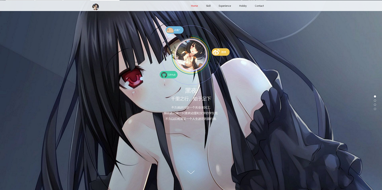 简介:黑夜主权个人团队HTML源码 | 二次元团队介绍页图片: