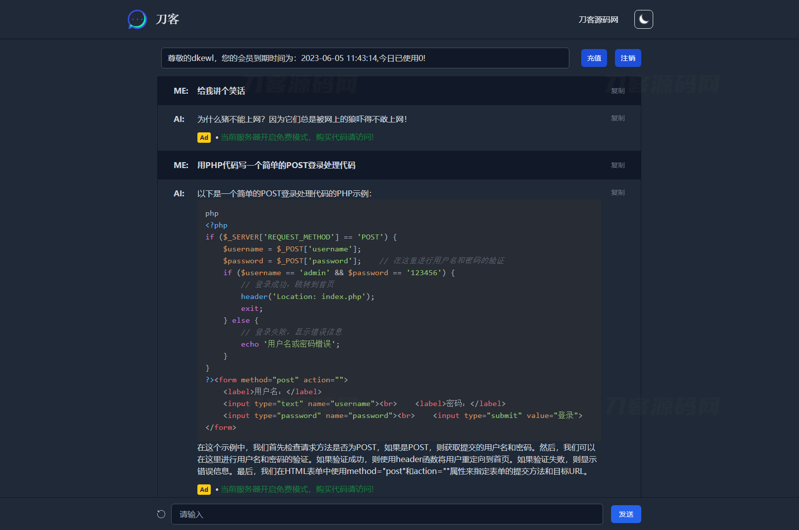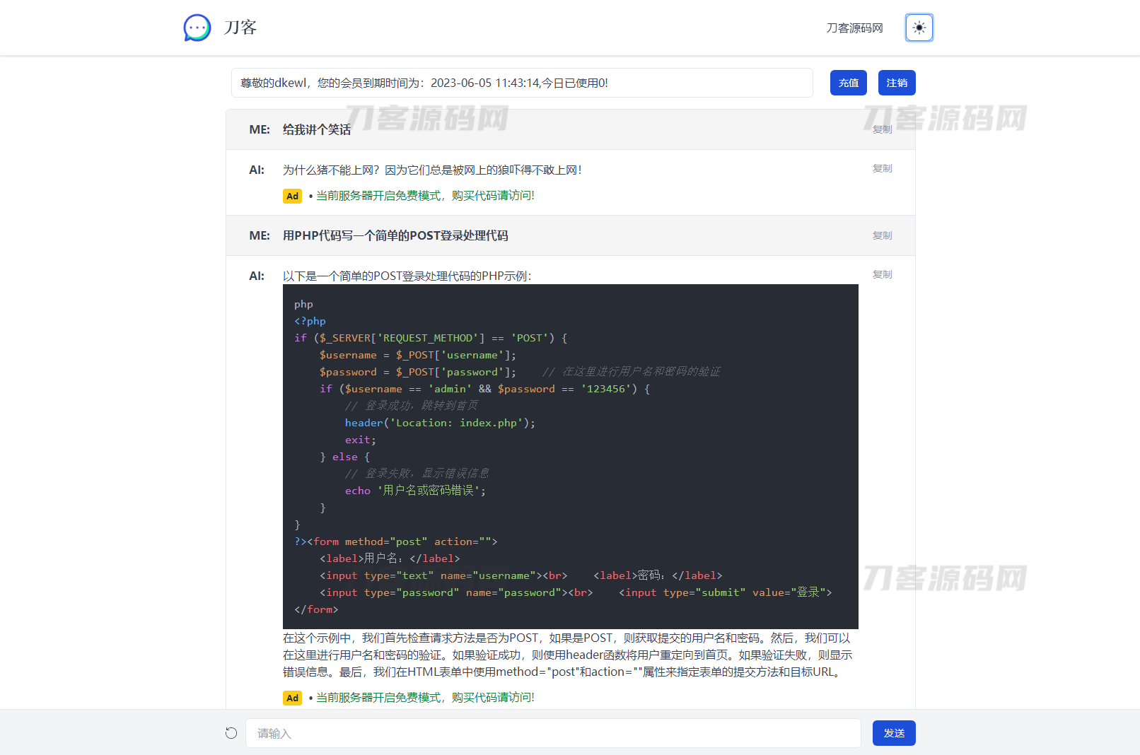 简介:最新ChatGPT商业运营版系统源码 全开源 站长亲测测试环境:PHP7.4+MySQL5.6 用是没问题的,反应也是很快的,充值方面使用的是后台生成卡密方式,有能力的可以对接一下在线支付,这样就非常完美了前台截图:后台截图: