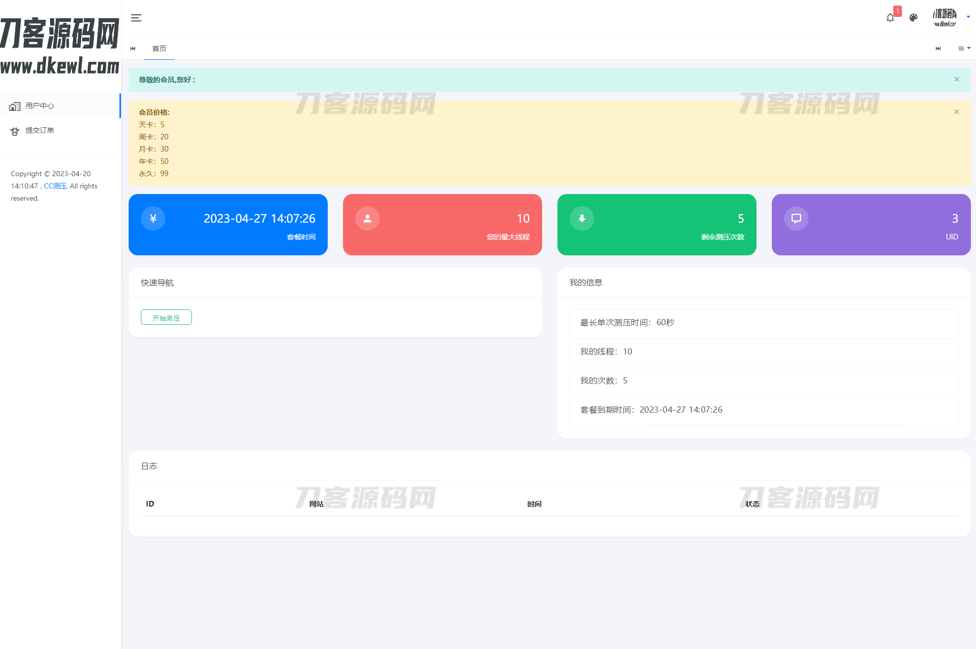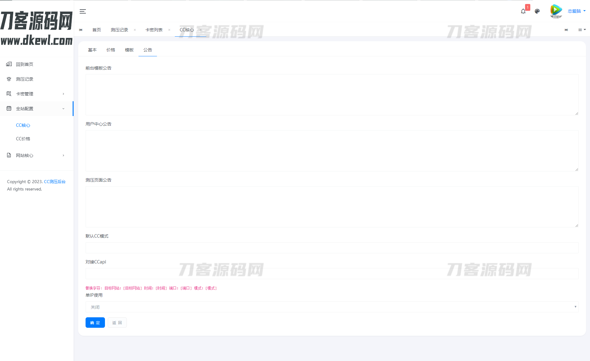 简介:2023最新网站服务器CC压力测试系统源码 前后端全开源 一款可测压的系统,但不提供接口。此源码仅供学习交流使用!提示:攻击网站属于违法犯罪行为。请勿违法使用!!!图片: