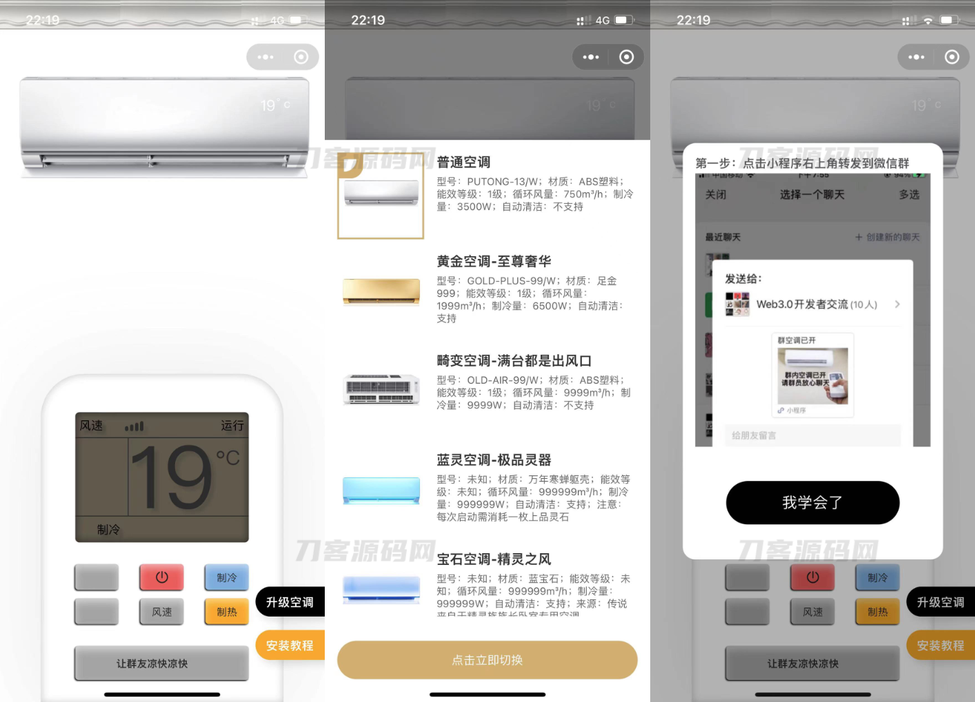 | 标签 | 支持流量主切换空调型号虚拟便携空调小程序源码 | ||