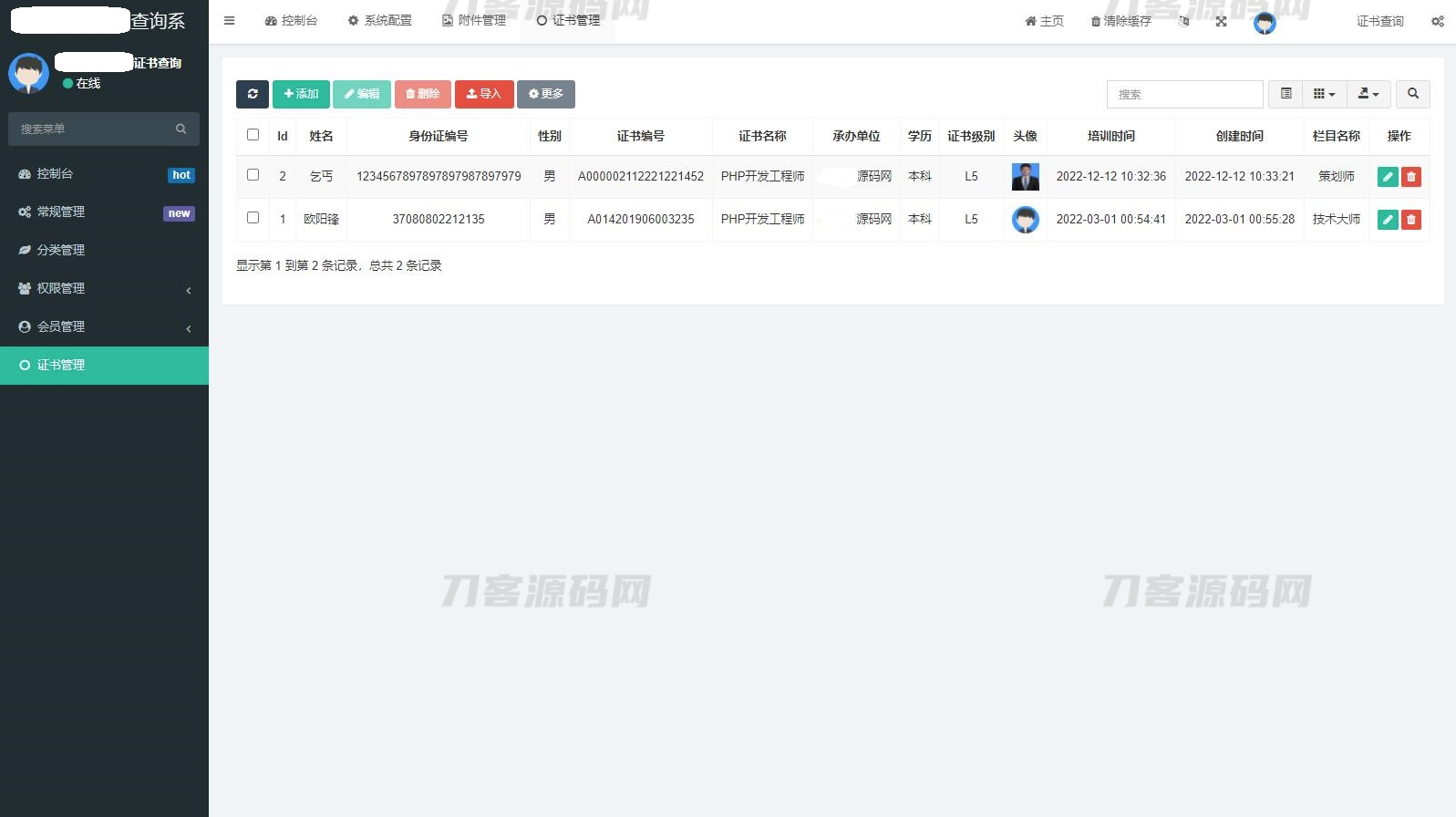 | 标签 | 自适应手机端证书在线查询系统源码资质证书系统网站源码 | ||